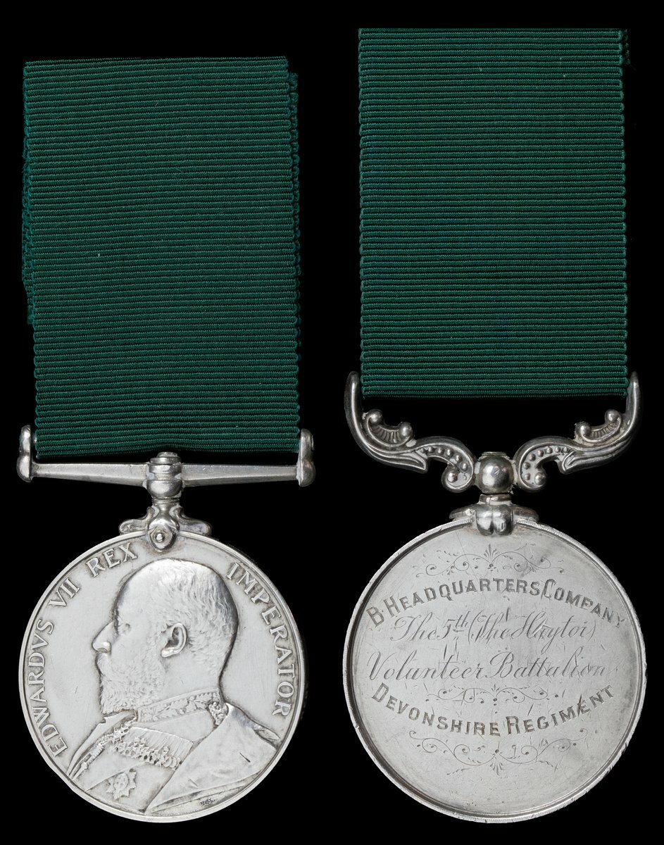 Volunteer Force L.S. & G.C., E.VII.R. (681 Sgt E. Chapple. 5th V.B. Devon: Regt), officially impressed, together with a silver prize medal, the obverse (B Headquarters Company the 5th (The Haytor) Volunteer Battalion Devonshire Regiment) engraved, the reverse (Newton Abbot Won by Hospital Sergeant Edward Chapple 1897 Efficiency) engraved, very fine (2)