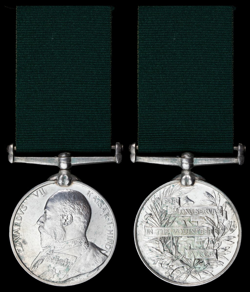 Volunteer Force Long Service Medal (India & the Colonies), E.VII.R. (Volr: A. L. Bickers. Rohilkhand Volr: Rifles.), officially engraved naming, official corrections, very fine