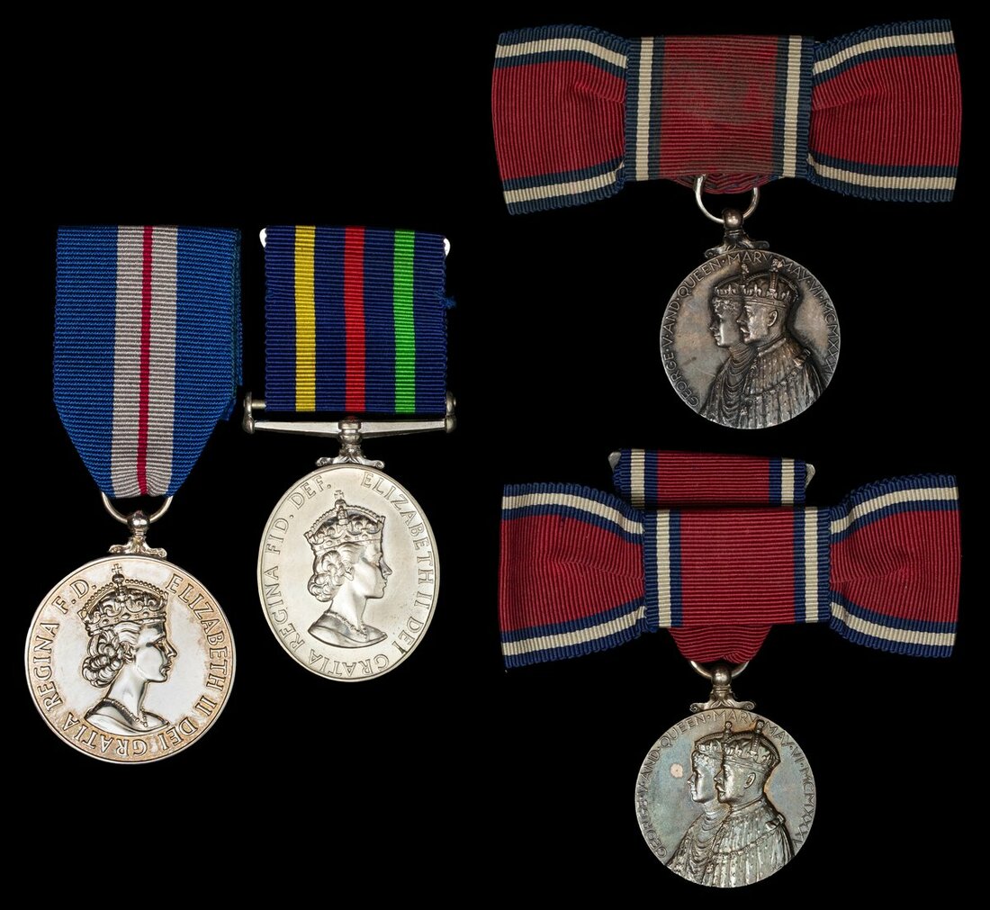 Jubilee 1935, in box of issue; Jubilee 1935 with bow for wear by a lady; Civil Defence L.S. & G.C., E.II.R., in box of issue; Queen's Gallantry Medal, E.II.R. (copy) in box of issue, very fine or better (4)