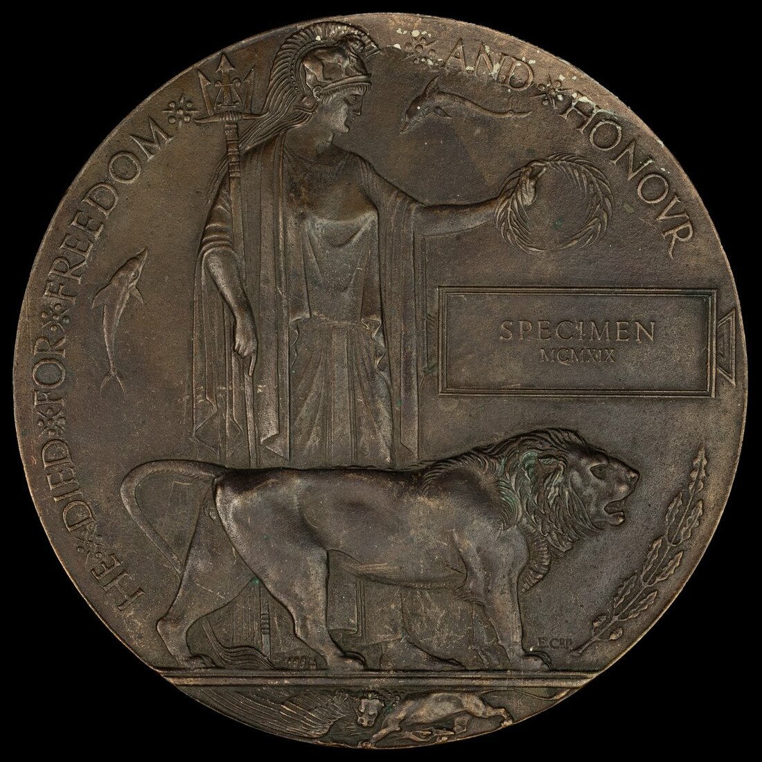 Great War Bronze Memorial Plaque (Specimen MCMXIX), light wear, very fine