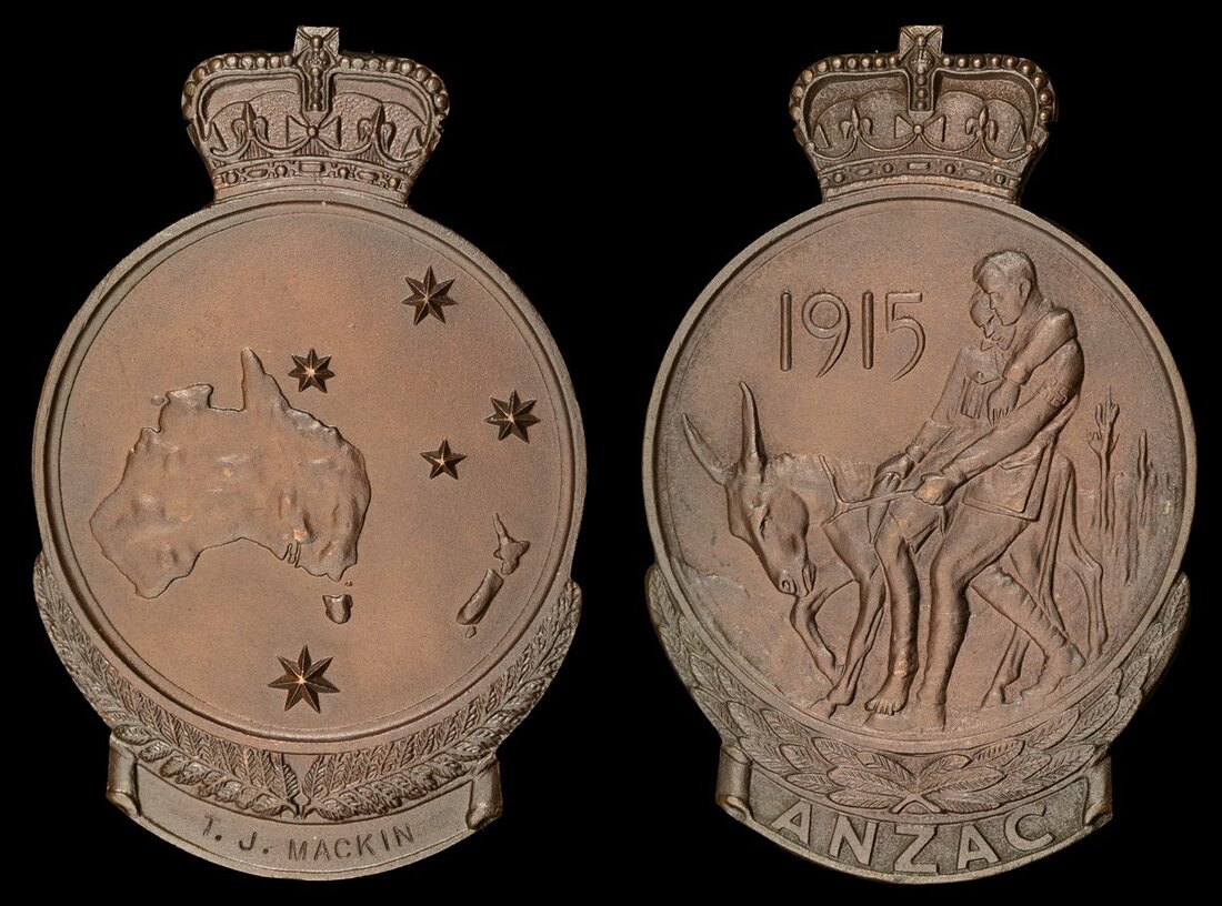 An Anzac Commemorative Medal to T. J. Mackin who was awarded a Military Medal for his Great War service