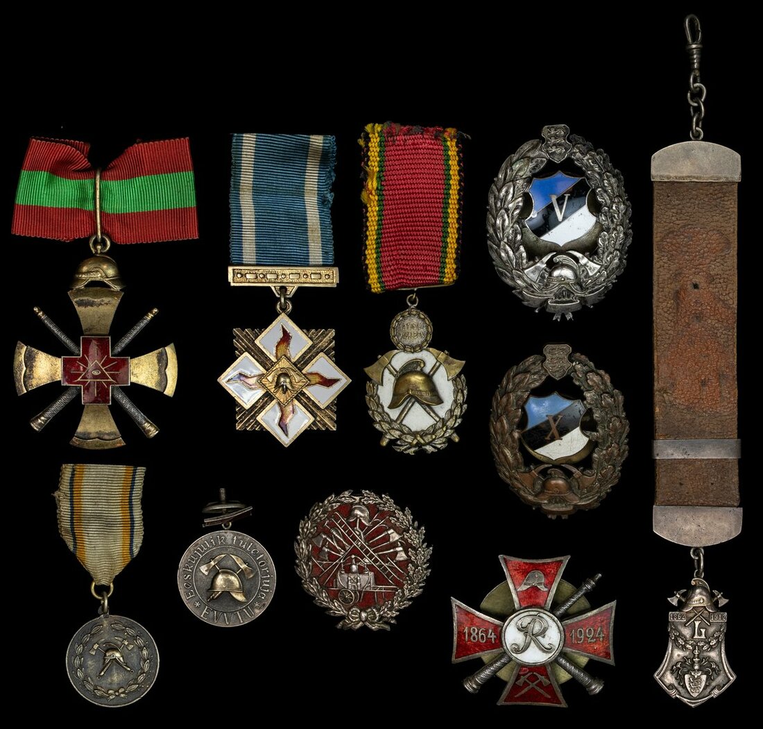 An assortment of Medals, Badges and Insignia, relating to the Fire Brigades of European Nations, one badge incomplete, otherwise with some light enamel damage, generally very fine (14)