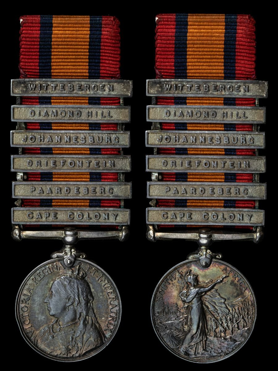 Queen’s South Africa 1899-1902, 6 clasps, Cape Colony, Paardeberg, Driefontein, Johannesburg, Wittebergen, Diamond Hill, mounted as worn and in fitted Spink & Son case of issue, good very fine