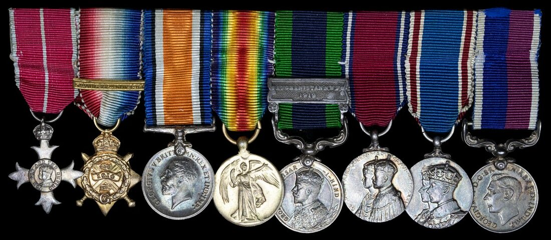 The Most Excellent Order of the British Empire, Military Division, 2nd Type, Member's breast Badge; 1914 Star, 1 clasp, 5th Aug - 22nd Nov 1914; British War and Victory Medals; India General Service 1908-35, 1 clasp, Afghanistan N.W.F. 1919; Jubilee 1935; Coronation 1953; Royal Air Force L.S. & G.C., G.VI.R, very fine (8)