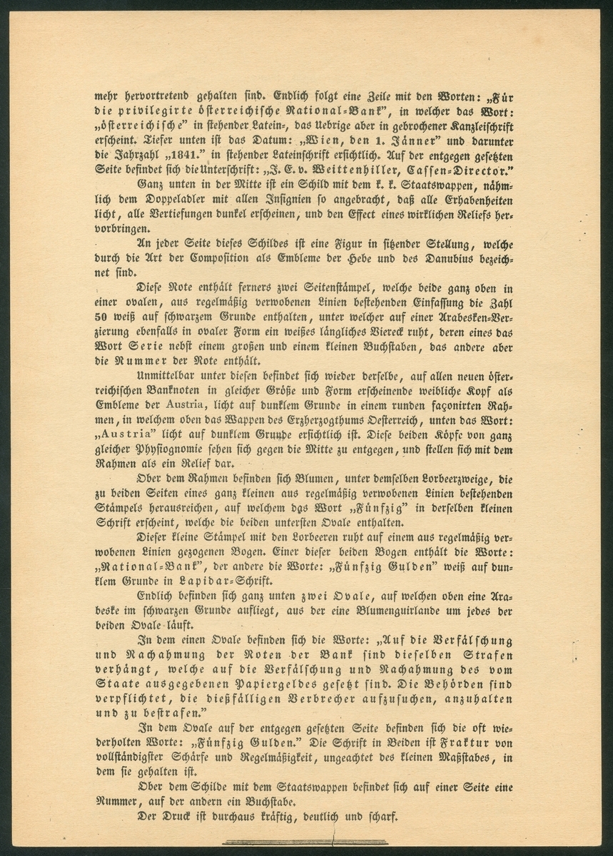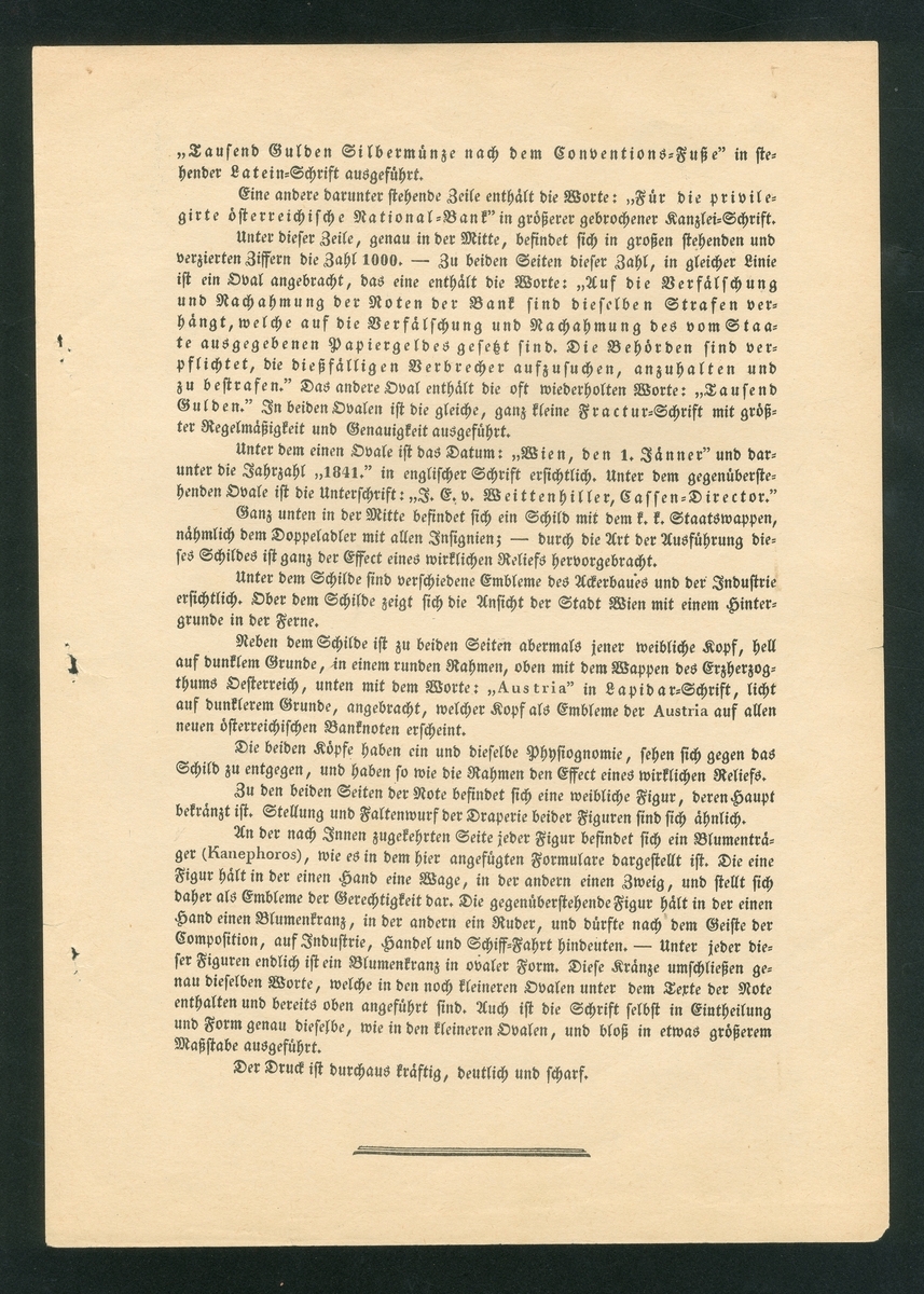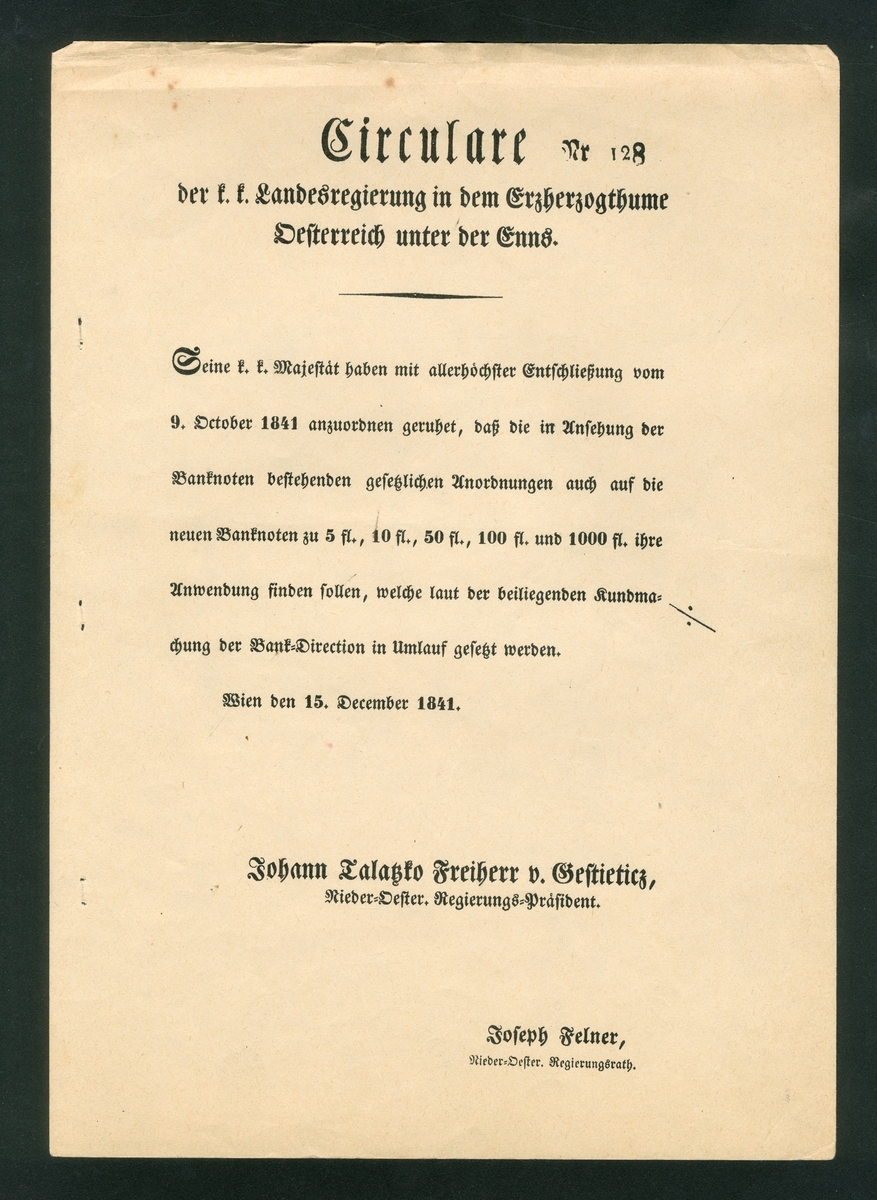 Documents and corresponding banknote relating to the new issue of banknotes, Austrian Empire, 1811, 1815, & 1841,