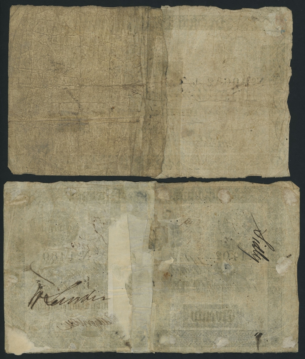 (PMI PR 9 for type, PR 21 for type, PR 19 for type, PR 11 for type, PR 26 for type), mostly fair to good, heavy repairs and reconstructions, cancelled, previously mounted with remnants, all notes have been cut and re-joined (8 notes)