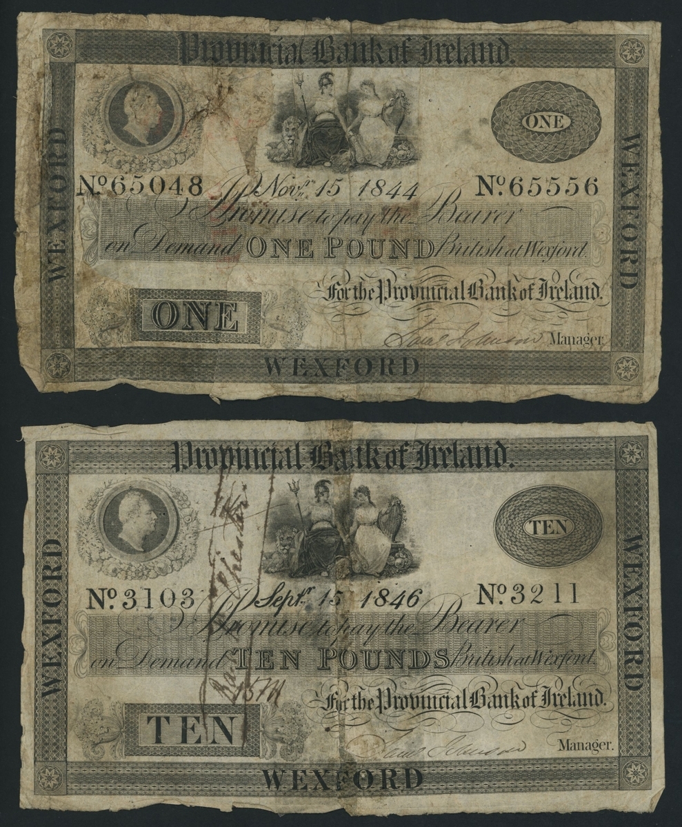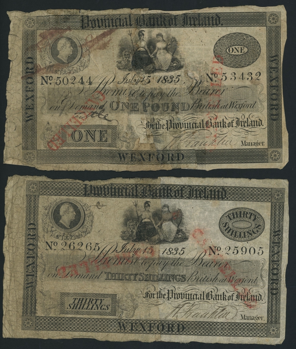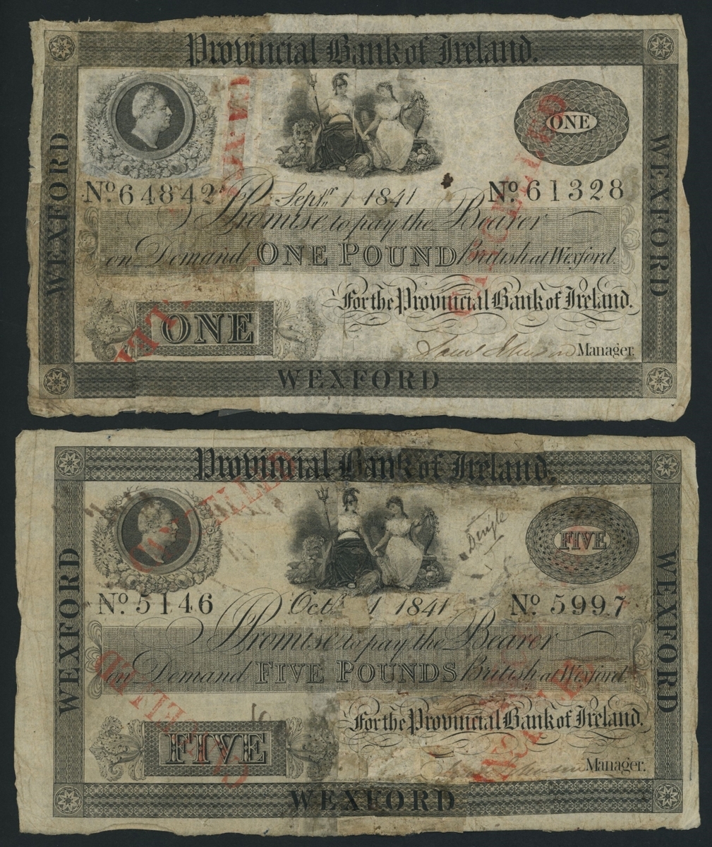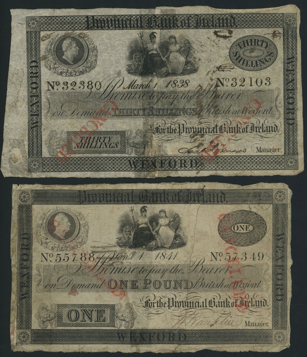 Provincial Bank of Ireland, [8 notes], Wexford, half notes without matching serial numbers,
