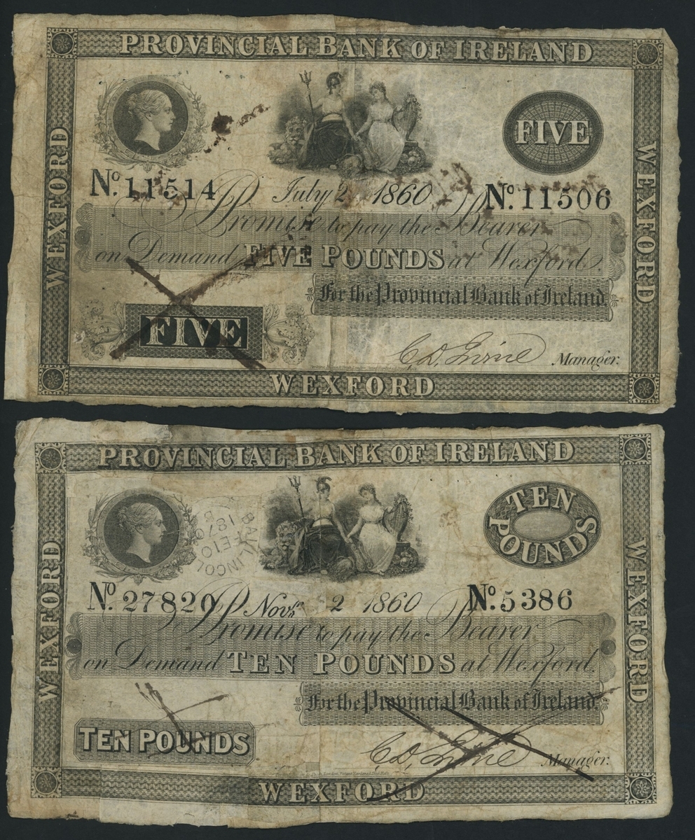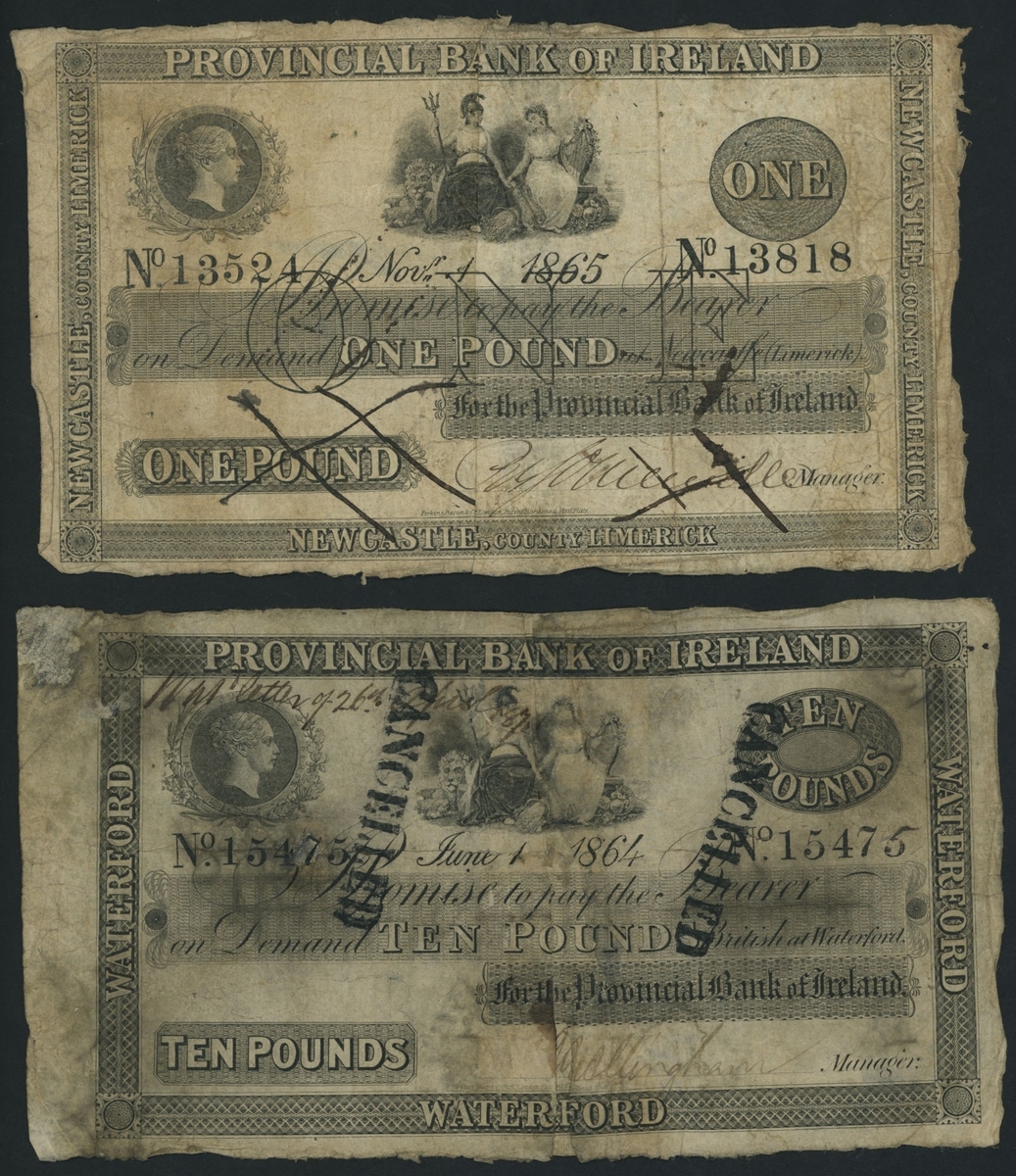 Provincial Bank of Ireland, [13 notes], various branches, half notes without matching serial numbers,