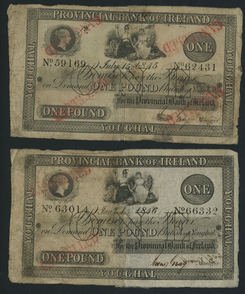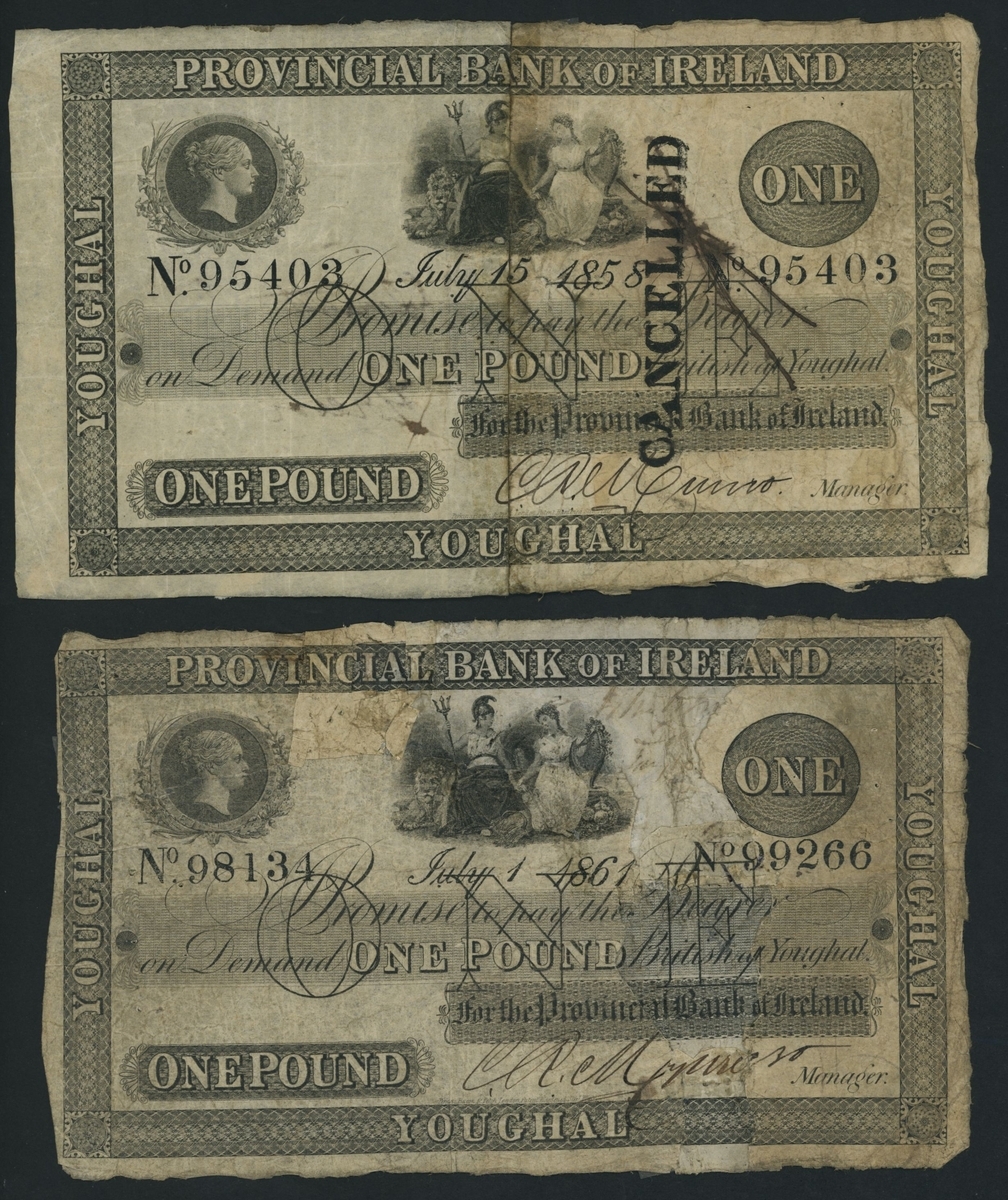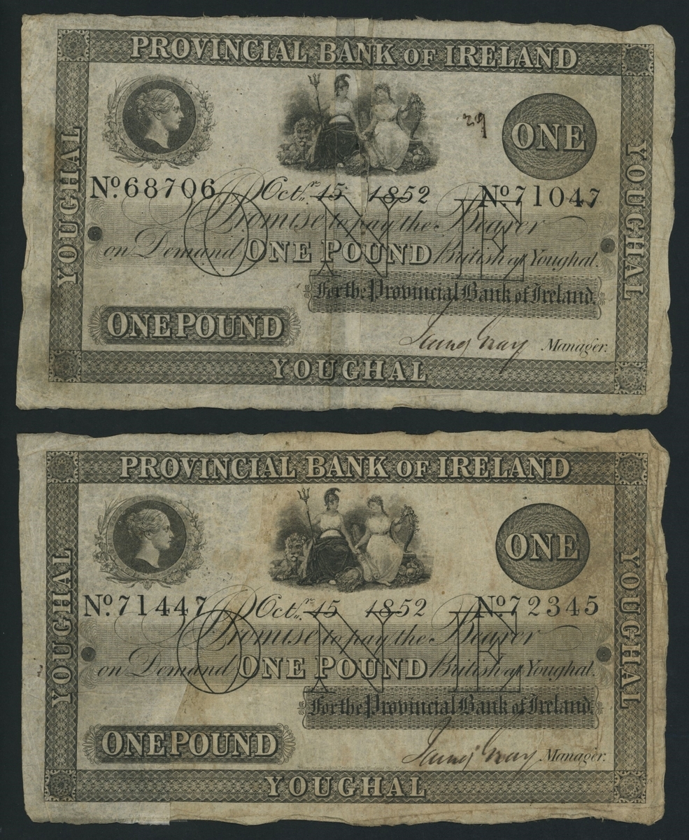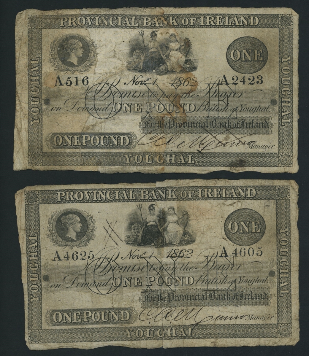 Provincial Bank of Ireland, [16 notes], Youghal, half notes without matching serial numbers,