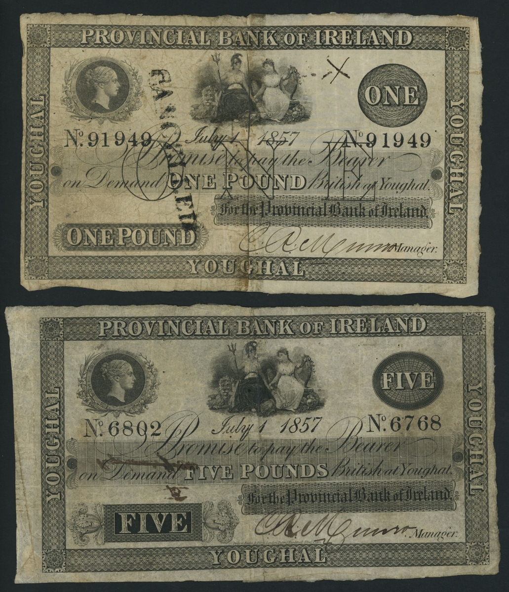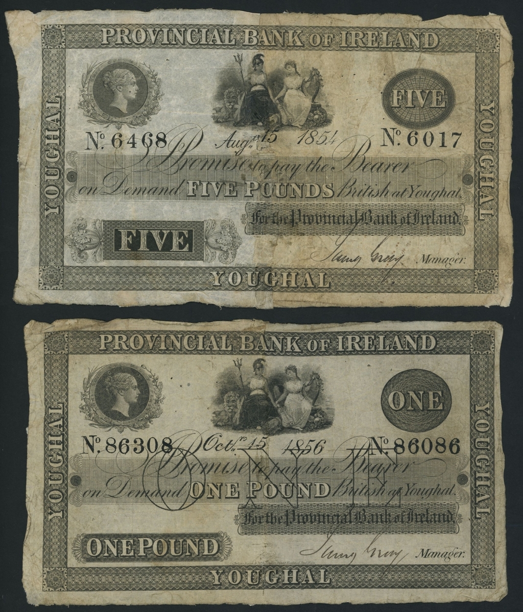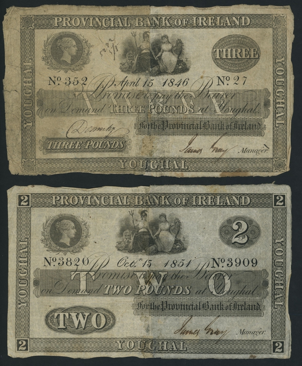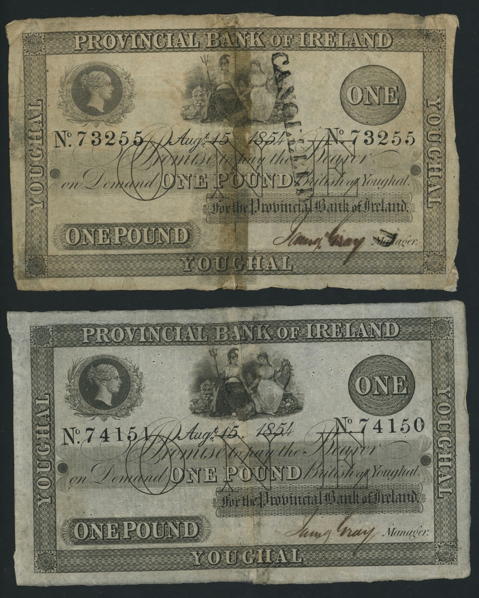 Provincial Bank of Ireland, [16 notes], Youghal, half notes without matching serial numbers,