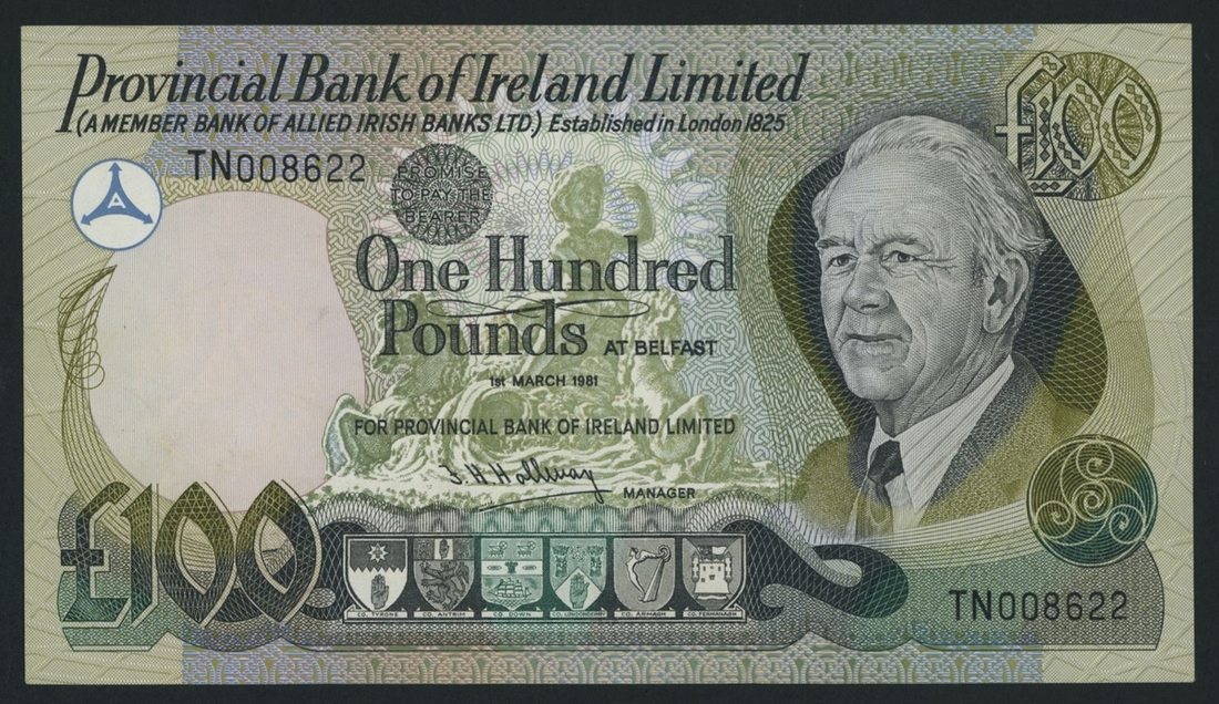 Provincial Bank of Ireland Limited, £100, 1st March 1981, serial number TN008622, (PMI PR 108), about uncirculated