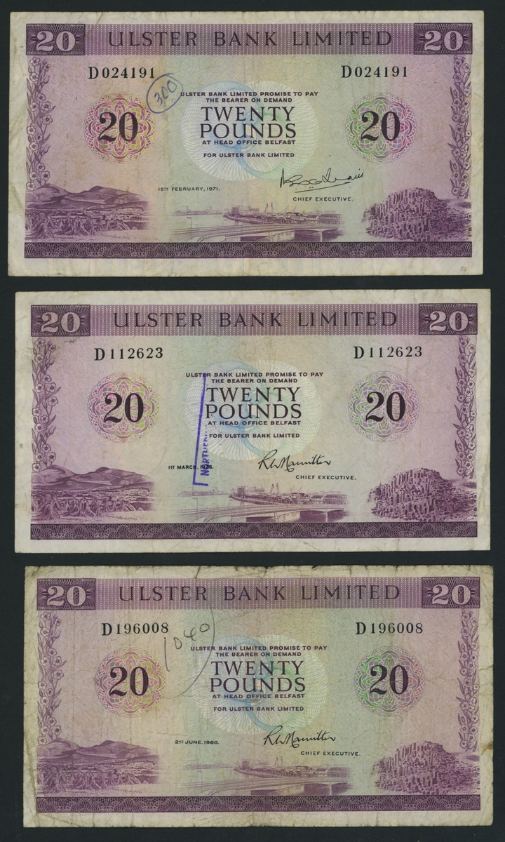 Ulster Bank Limited, [8 notes], £10, £20, 1971-1980,