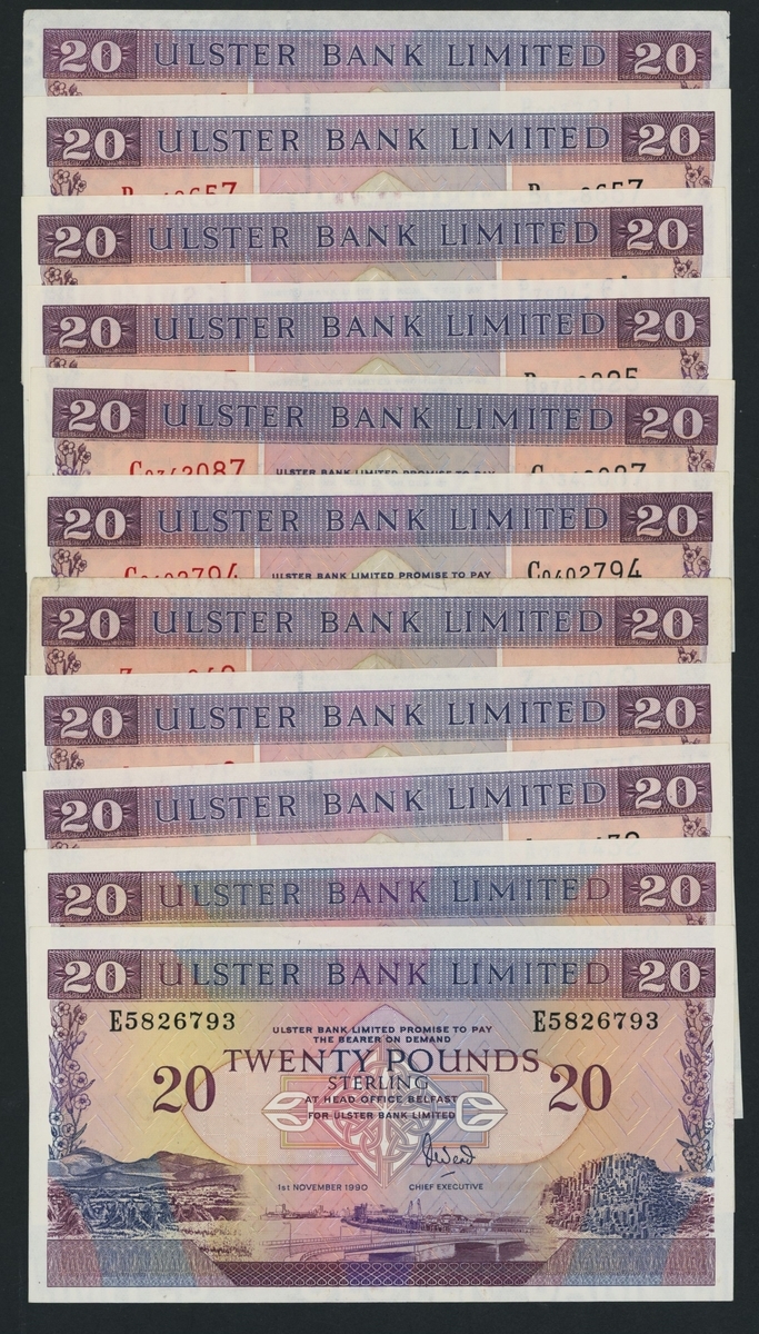 Ulster Bank Limited, Northern Ireland, [11 notes] £20, Belfast, 1990-1999, (PMI UB 85, 91, 92), very fine to uncirculated (11 notes)