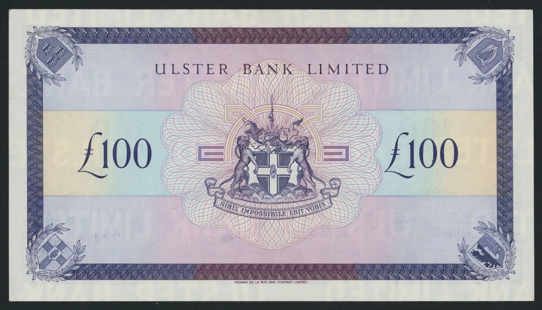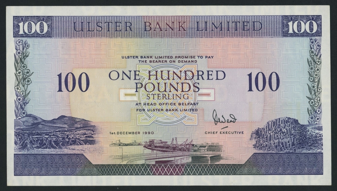 Ulster Banking Company, unissued £100 note, 1st December 1990, no serial number, (PMI UB 86), good about uncirculated