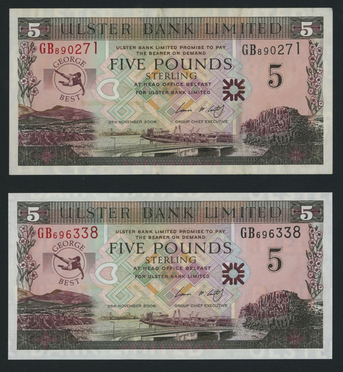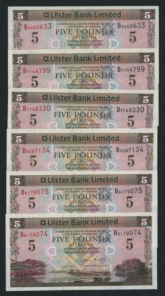 Ulster Bank Limited, [28 notes], £5, £10, 2001-2007,