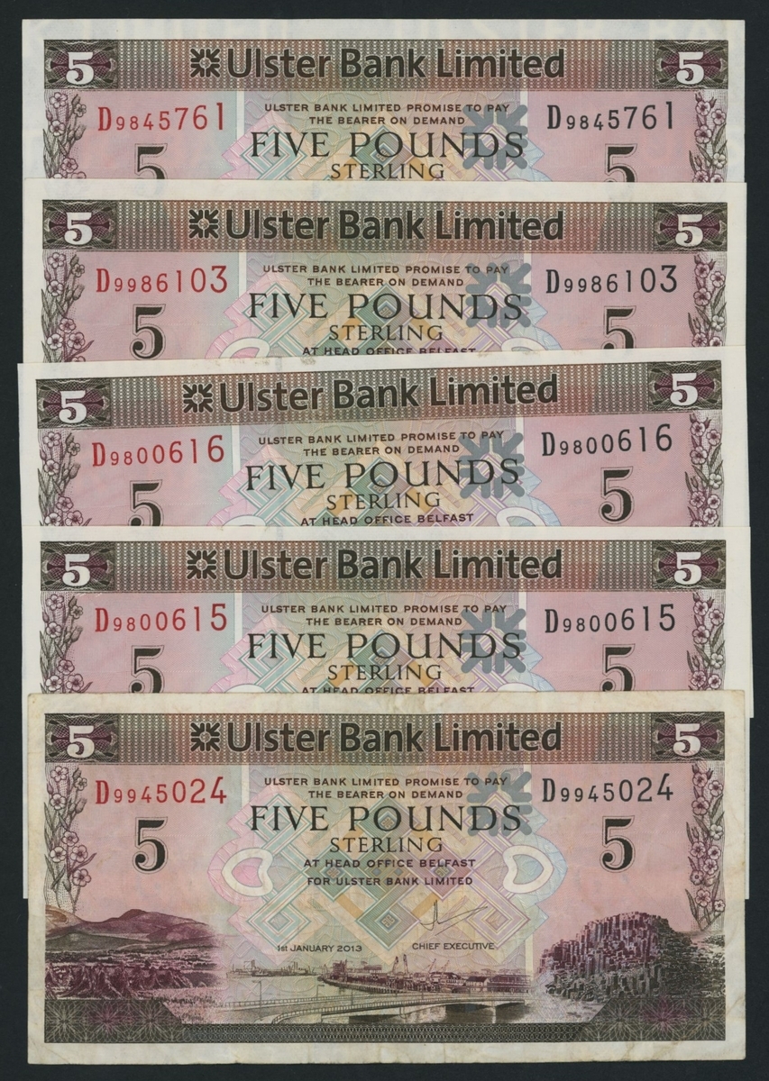 Ulster Bank Limited, [16 notes], £5, £10, 2012-2017,