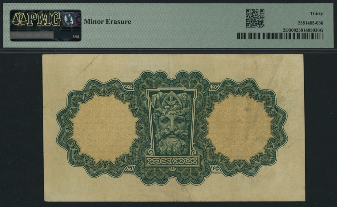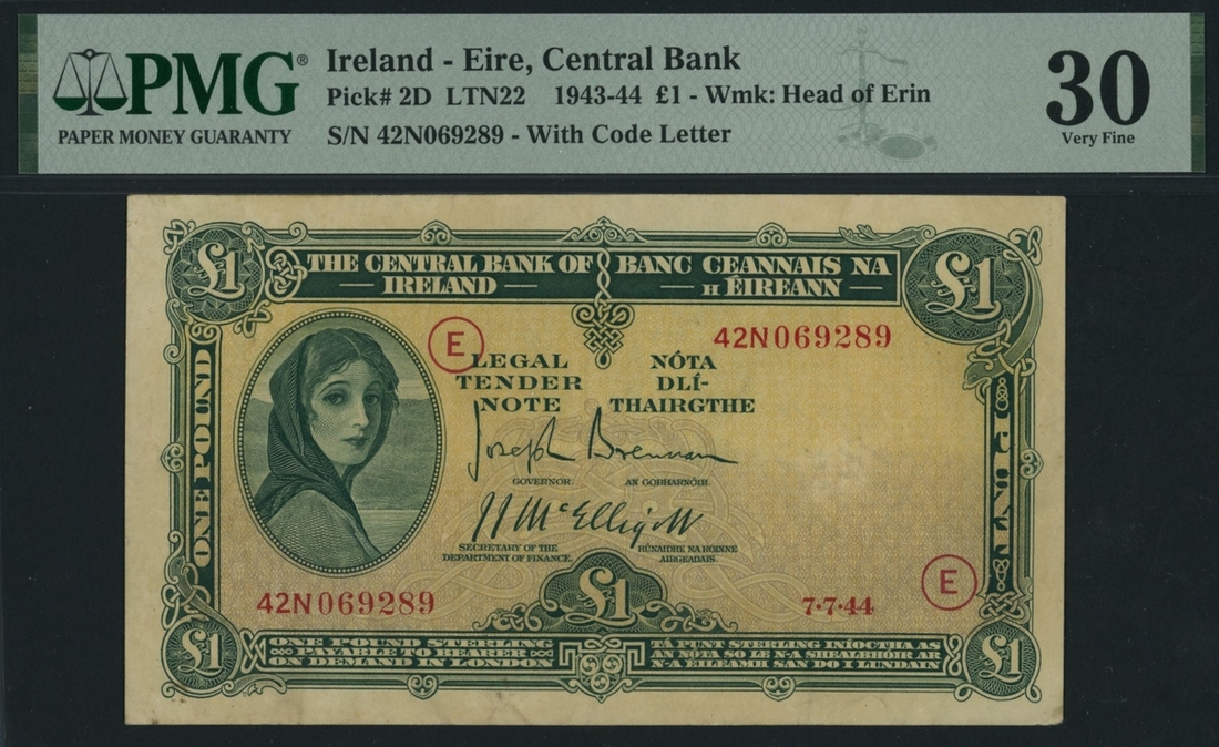 (x) Central Bank of Ireland, £1, 7th of July 1944, serial number 42N069289, code Letter E, (Pick 2D, LTN 22, BNB 202d), in PMG holder 30 Very Fine, minor erasure