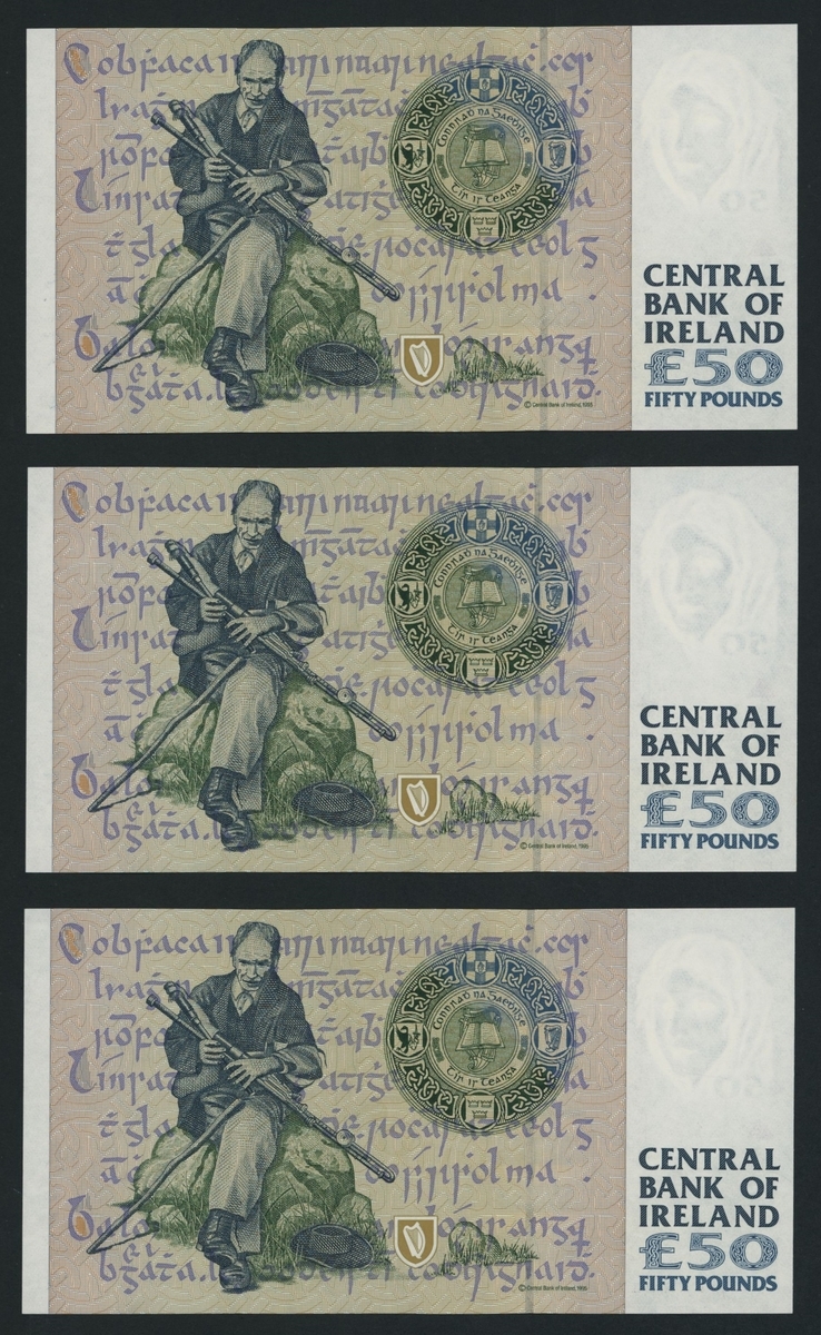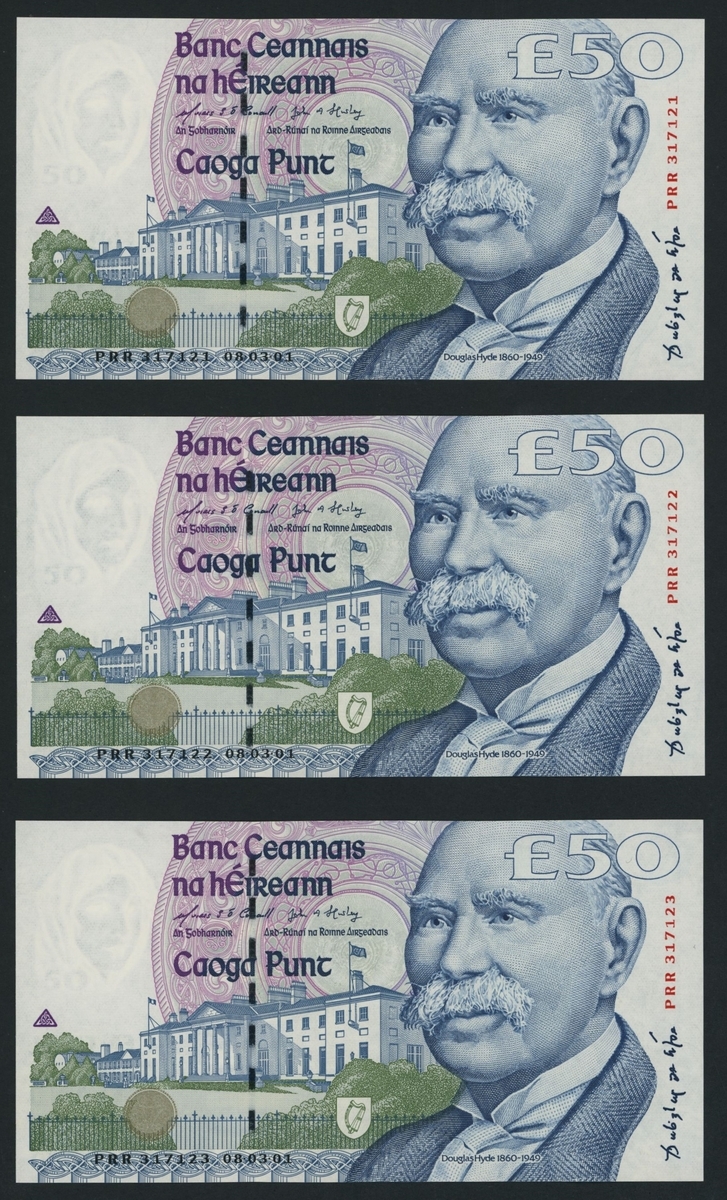 Legal Tender Notes, Ireland, [3 notes] £50, 8th March 2001, consecutive serial numbers PRR 317121-3, (PMI LTN 97), uncirculated (3 notes)