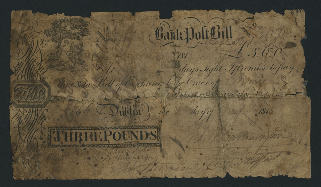 Bank Post Bill, £3, Dublin, ?th May 1815, serial number 247, (PMI PB 167), fair, heavy tape repairs