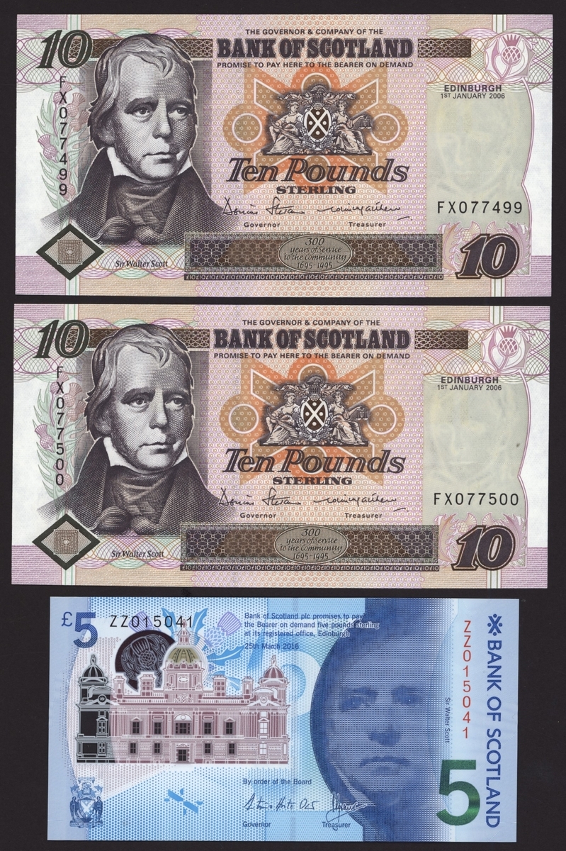 Consecutive pair of £10, Edinburgh, 1st January 2006, serial number FX077499-500,