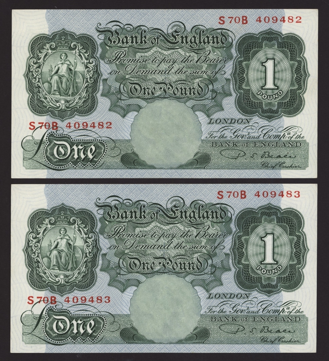 Collection of Bank of England and Channel Island Banknotes, [12 notes] 1950-2007, Beale, O'Brien, Somerset and Bailey signatures, including 2 consecutive serial numbers (EPM B268),