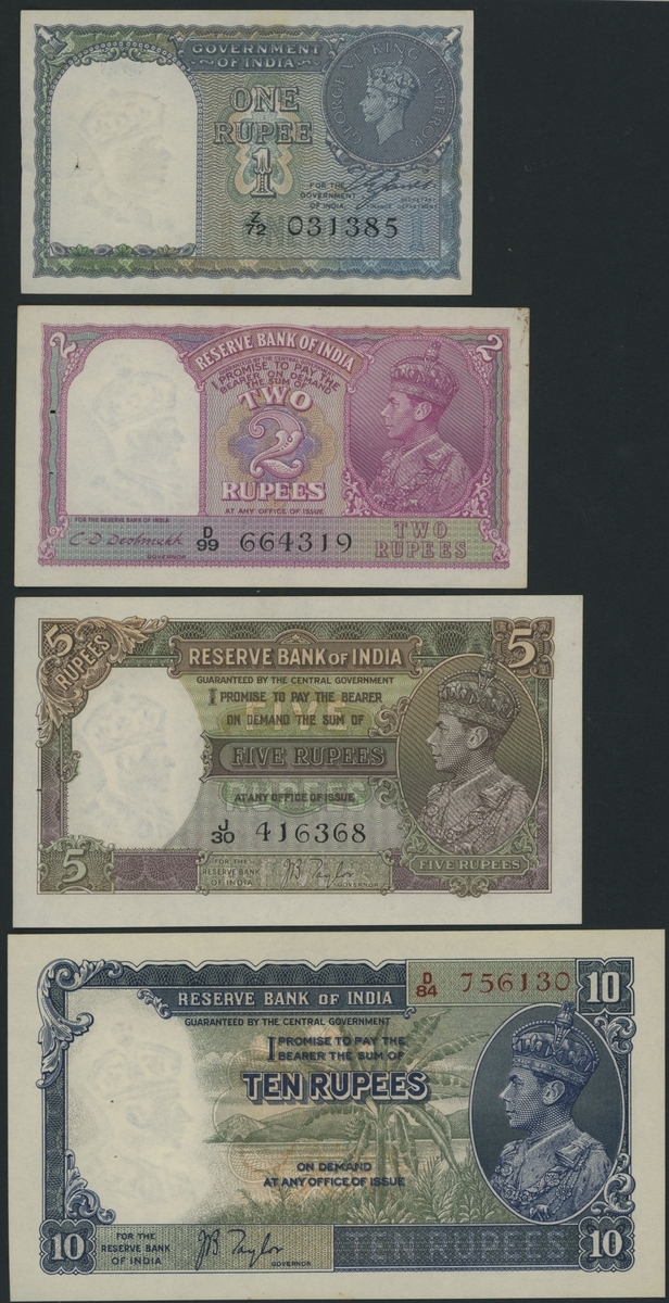 (x) India, [4 notes] 1, 2, 5, 10 Rupees,