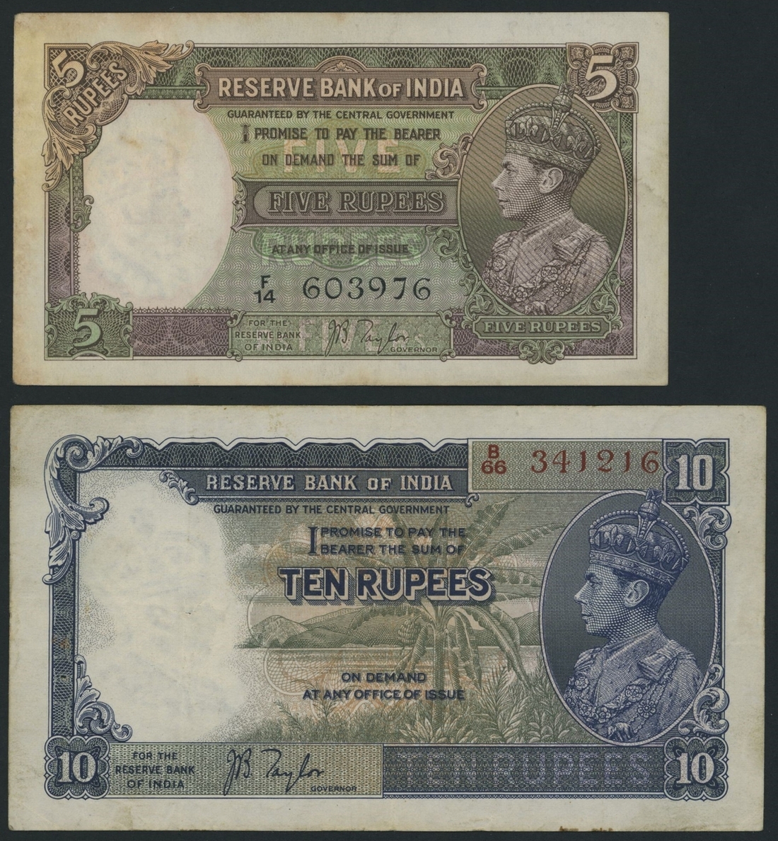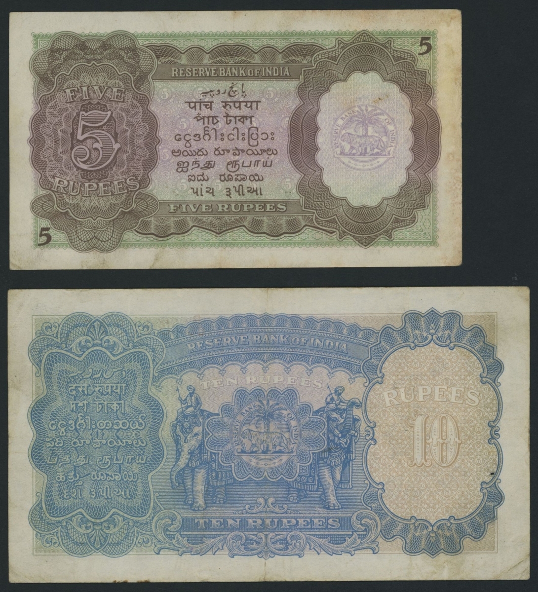 (x) Reserve Bank of India, [2 notes] 5, 10 Rupees, ND (1948),