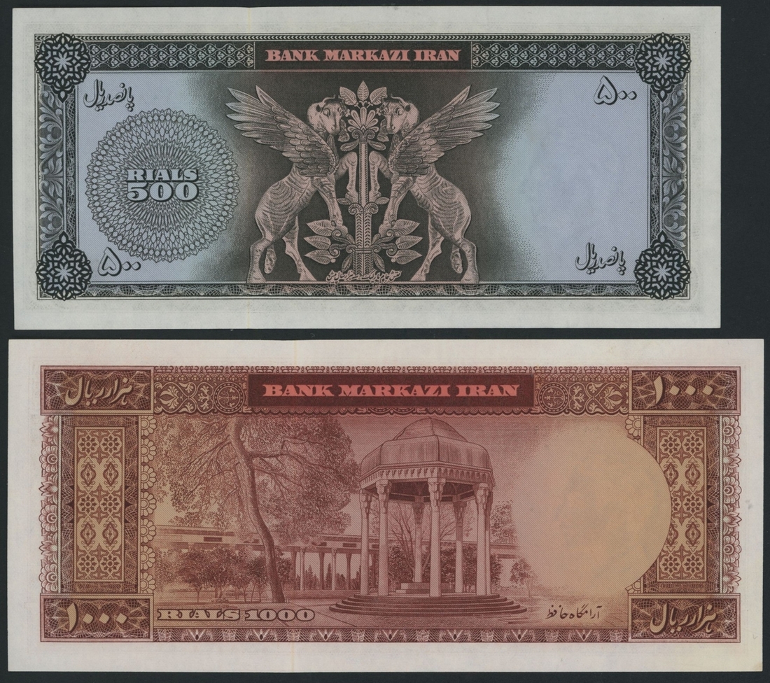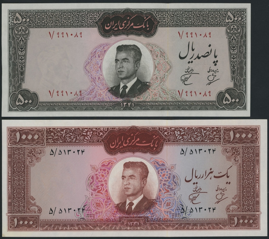 (x) Bank Markazi, Iran, [2 notes] 500, 1000 Rials, 1341 (1962),