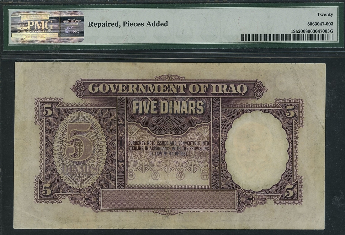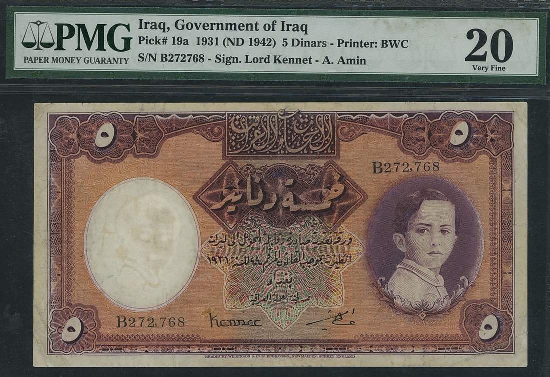 (x) Government of Iraq, 5 Dinars, 1931 (ND 1942), serial number B272768, signature Lord Kennet - A.Amin,