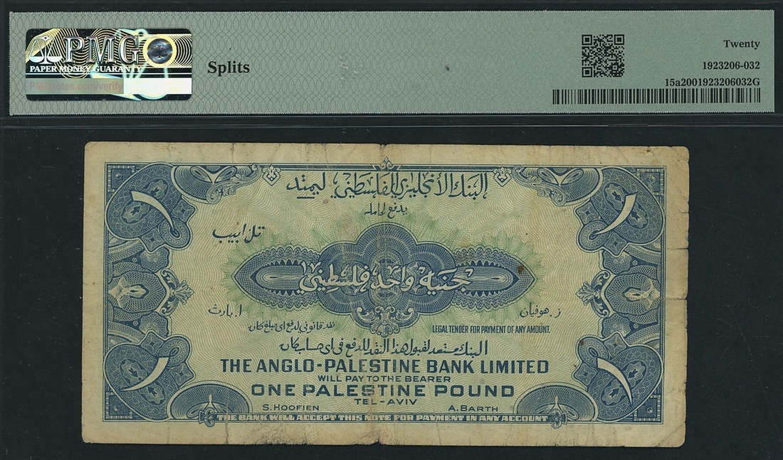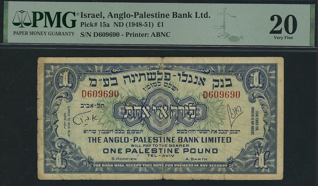 (x) Anglo-Palestine Bank Limited, Israel, £1, Tel-Aviv, ND (1948-51), serial number D609690, (Pick 15a, BNB 107a), in PMG holder 20 Very Fine, splits