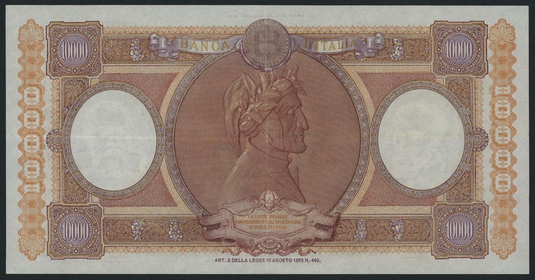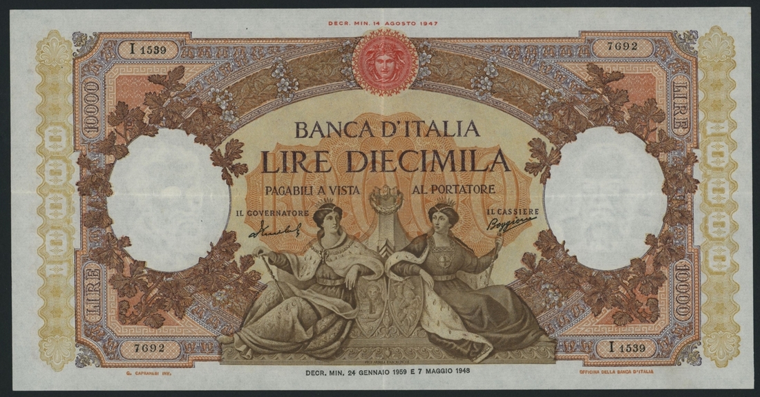 10000 Lire, 24th January 1959, serial number I15397692, signatures of Menichella and Boggione,