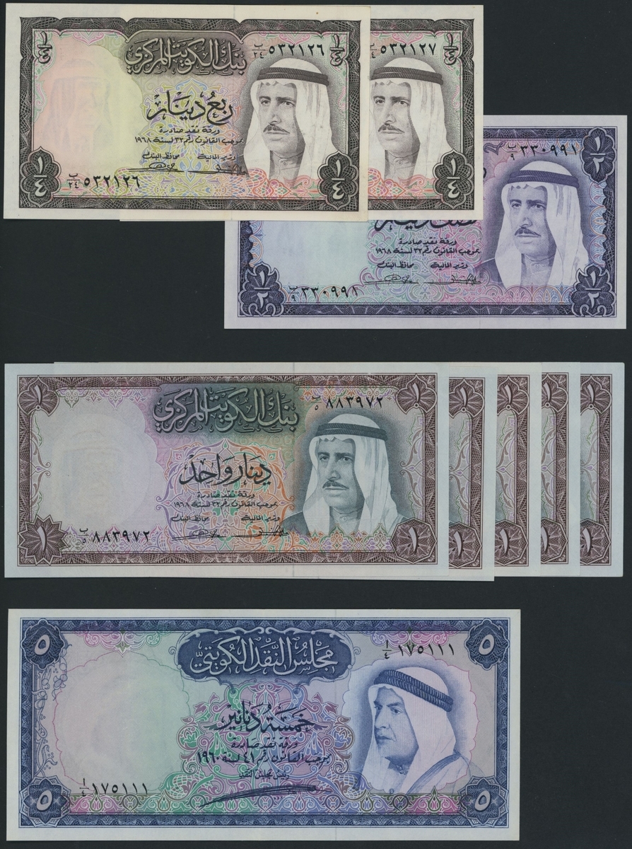 (x) Kuwait, [9 notes] 1/4, 1/2, 1, 5 Dinars, 1960-8,