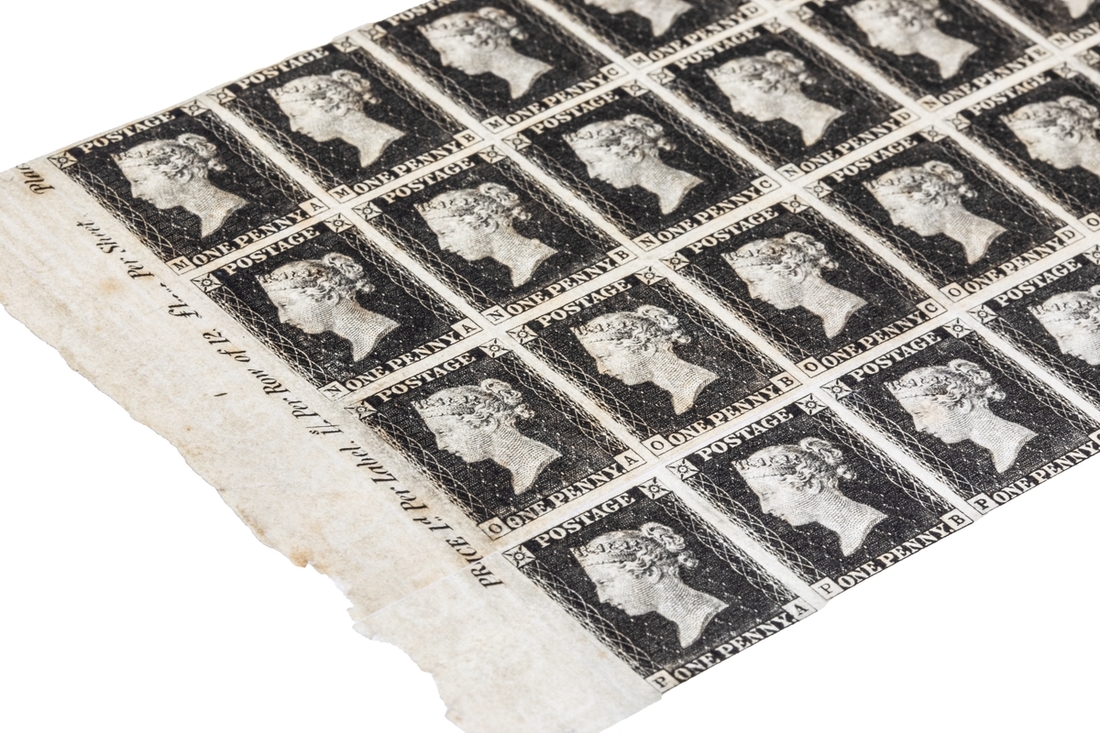 Although a total of over 68 million stamps were printed, surviving unused examples are rare, multiples rarer still; there are known a few strips and blocks of four and six though anything larger than this must be considered a great rarity. If one considers the reason for this for a moment, the existence of a large unused multiple is quite remarkable. The high quantity printed indicates, as we know to be true, a high rate of usage, therefore unknown examples must be rare. The original purchase of a large multiple is, in itself, unusual; the purchase of an entire sheet would have been the equivalent of three weeks wages for an average male worker. A large multiple would perhaps have been bought from the Post Office by a business or wealthy household as a stock of stamps to be used for their many letters, but again the intention would always have been to use the stock. The circumstances required for a large multiple to remain unused are, then, highly unusual.