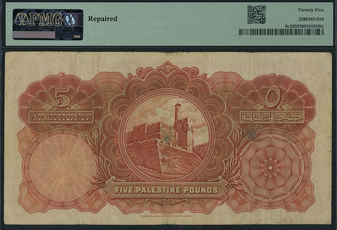 (x) Palestine Currency Board, 5 Palestine Pounds, Jerusalem, 20th April 1939, serial number B957062,