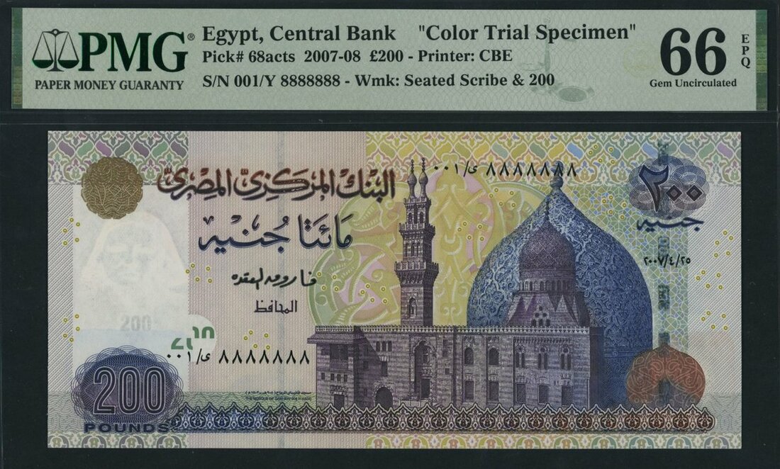 Central Bank of Egypt, *TOP POP* colour trial specimen £200, 2007, serial number 001/Y 8888888,