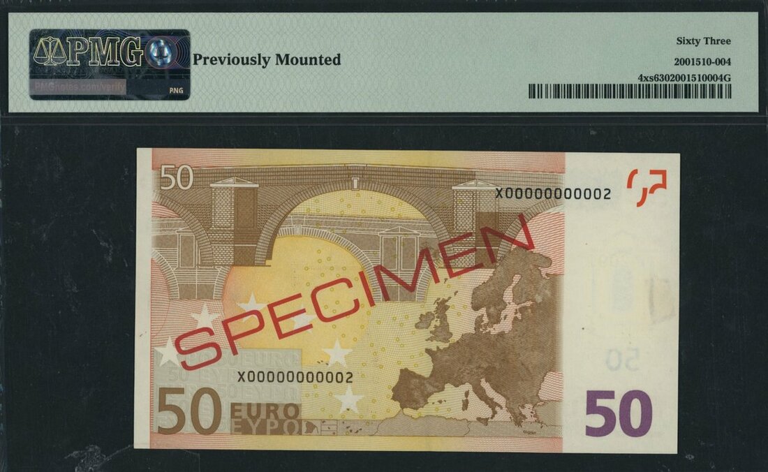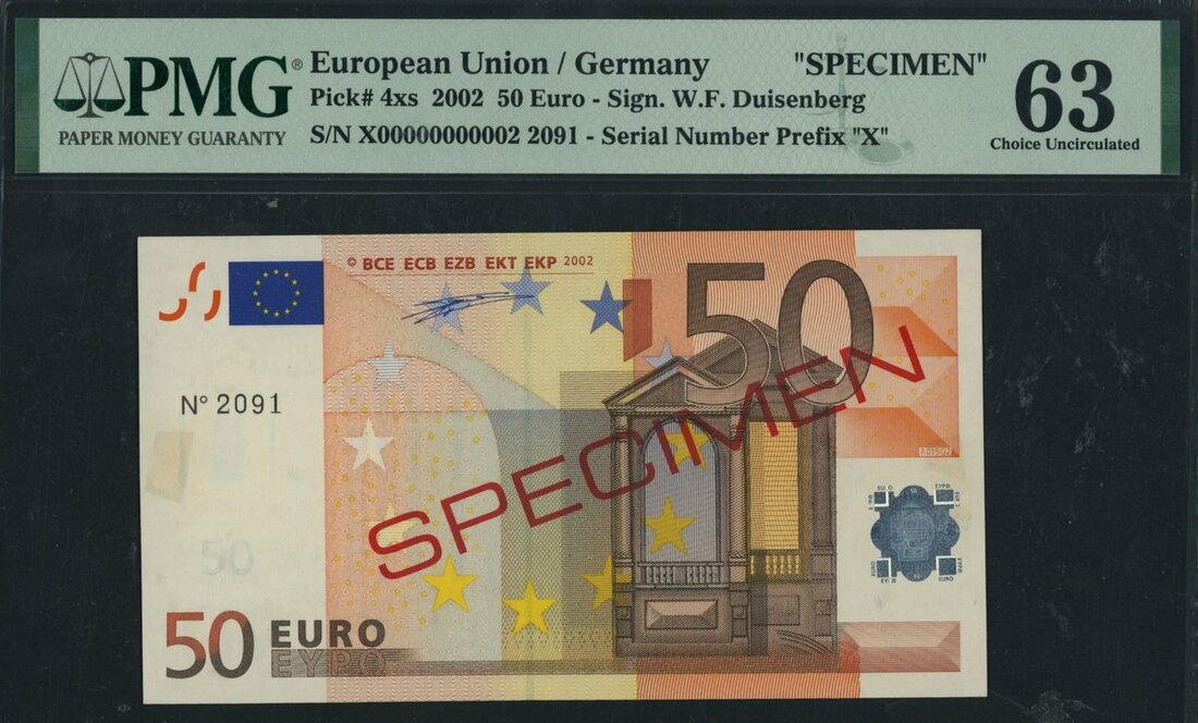 European Union, Germany, specimen 50 Euro, 2002, specimen number 2091, (Pick 4xs), in PMG holder 63 Choice Uncirculated