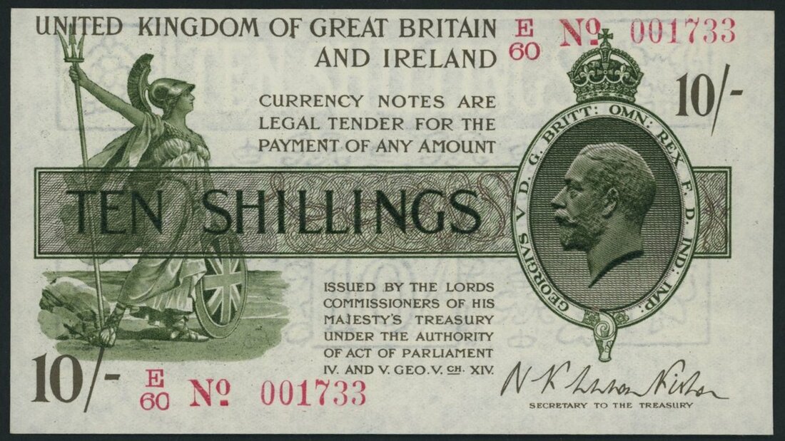 Treasury Series, N. F. W. Fisher, 10/- Shillings, ND (1919), serial number E/60 001733, (EPM T26), good extremely fine