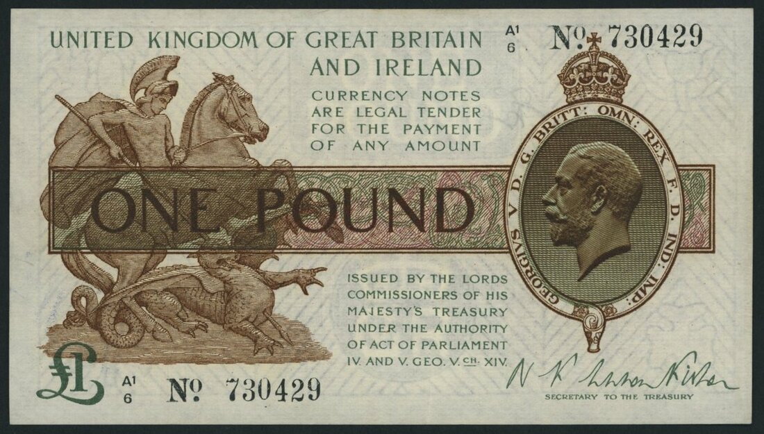 Treasury Series, N. F. W. Fisher, £1, ND (1923), first series serial number A1/6 730429, (EPM T31), extremely fine