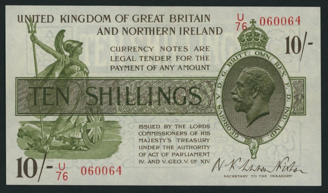 Treasury Series, N. F. W. Fisher, 10/- Shillings, ND (1927), serial number U/76 060064, (EPM T33), extremely fine