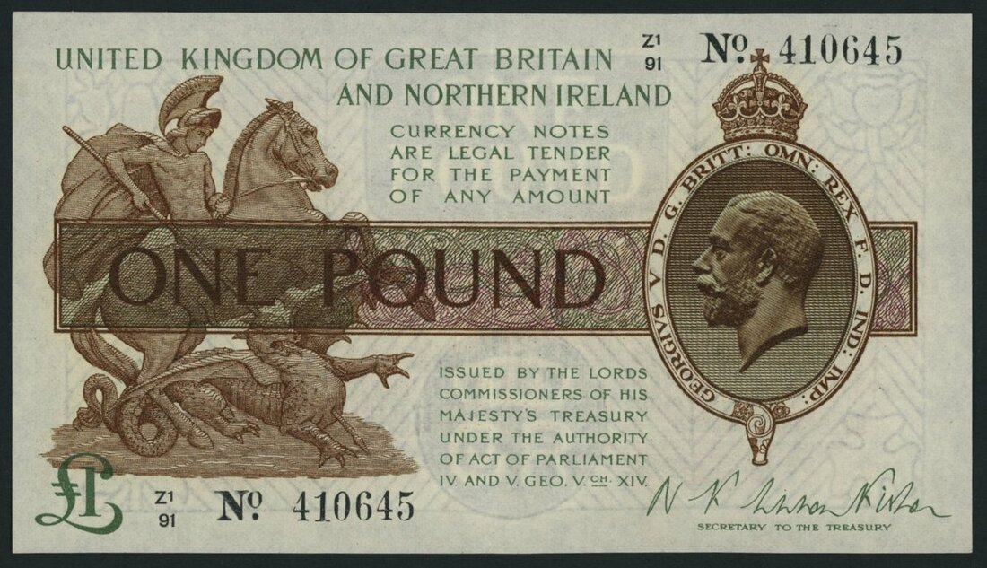 Treasury Series, N. F. W. Fisher, £1, ND (1927), control note serial number Z1/91 410645, (EPM T34), uncirculated, and scarce as such
