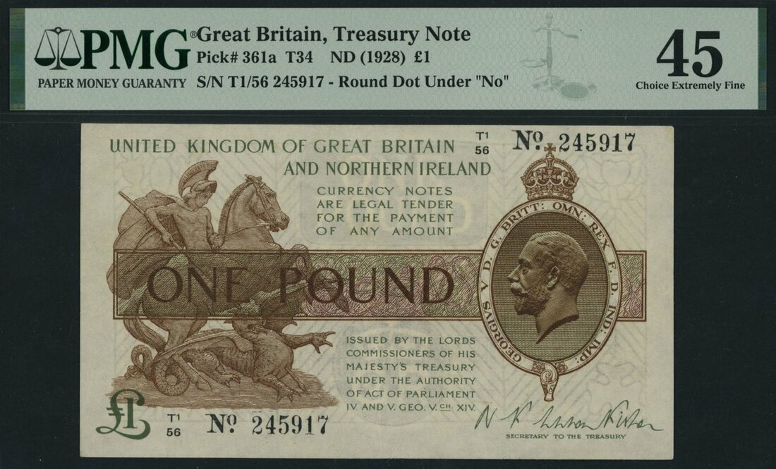 Treasury Series, N. F. W. Fisher, £1, ND (1927), serial number T1/56 245917, (EPM T34), in PMG holder 45 Choice Extremely Fine