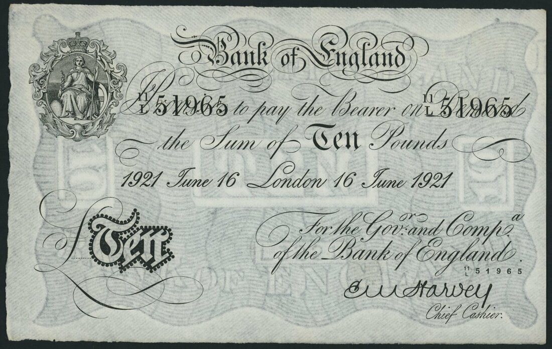 Bank of England, E. M. Harvey, £10, London, 16th June 1921, serial number 11/L 51965, (EPM B209b), good extremely fine