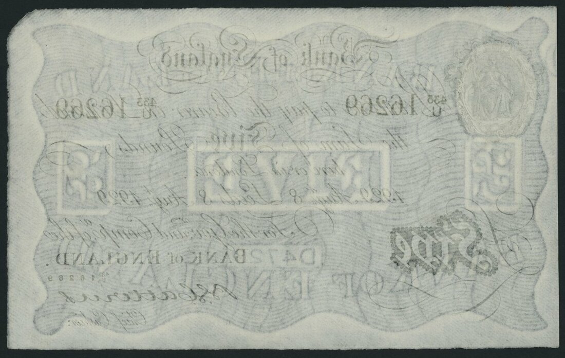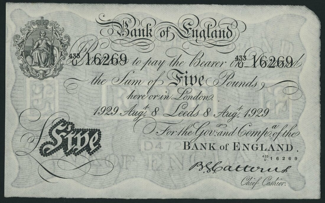 Bank of England, B. G. Catterns, £5, Leeds, 8th August 1929, serial number 433/U 16269, (EPM B228d), about uncirculated, scarce in this condition
