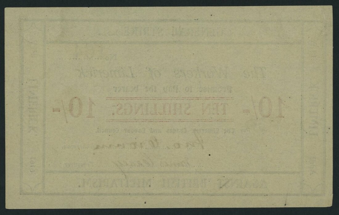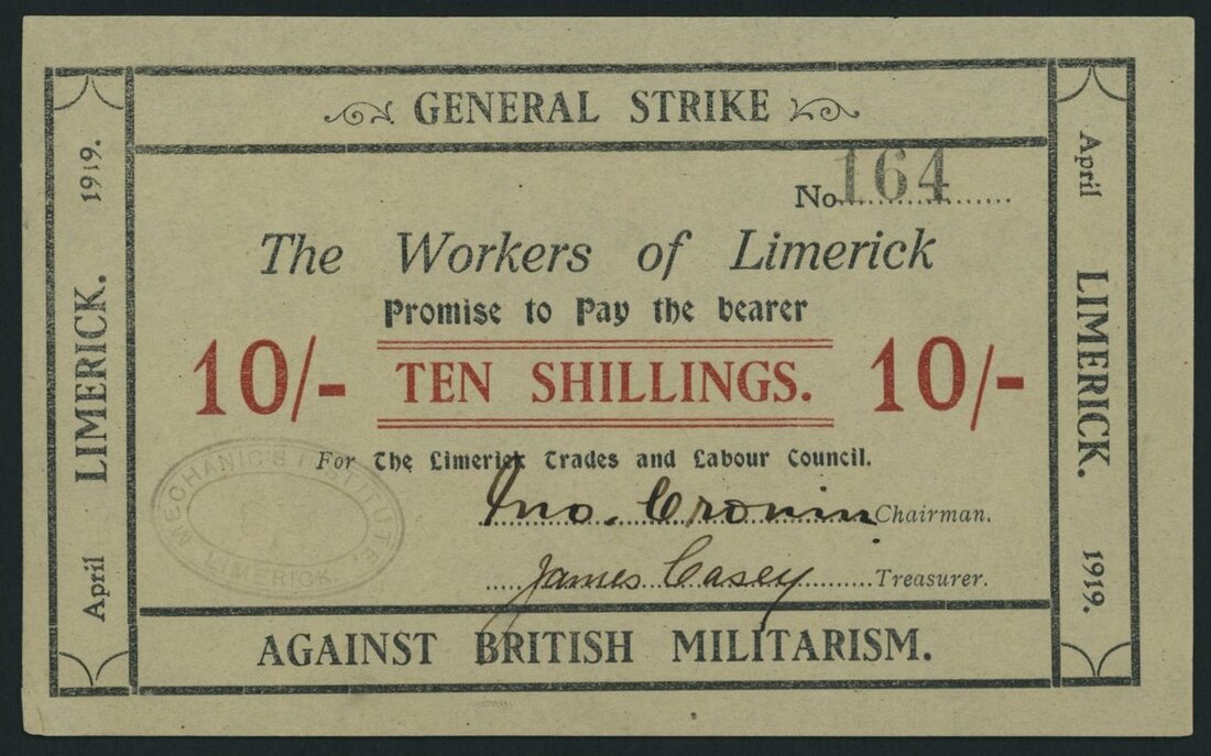 Limerick General Strike Against British Militarism, 10/- Shillings, ND (April 1919), serial number 164,