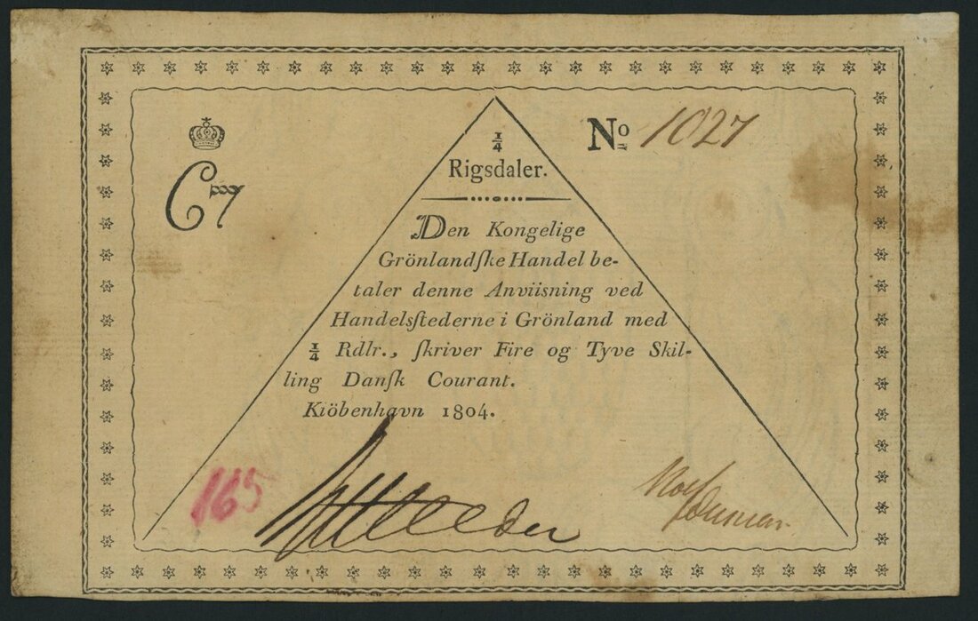 (x) Danish Administration, Greenland, 1/4 Rigsdaler, 1804, serial number 1027, Handelsstederne,