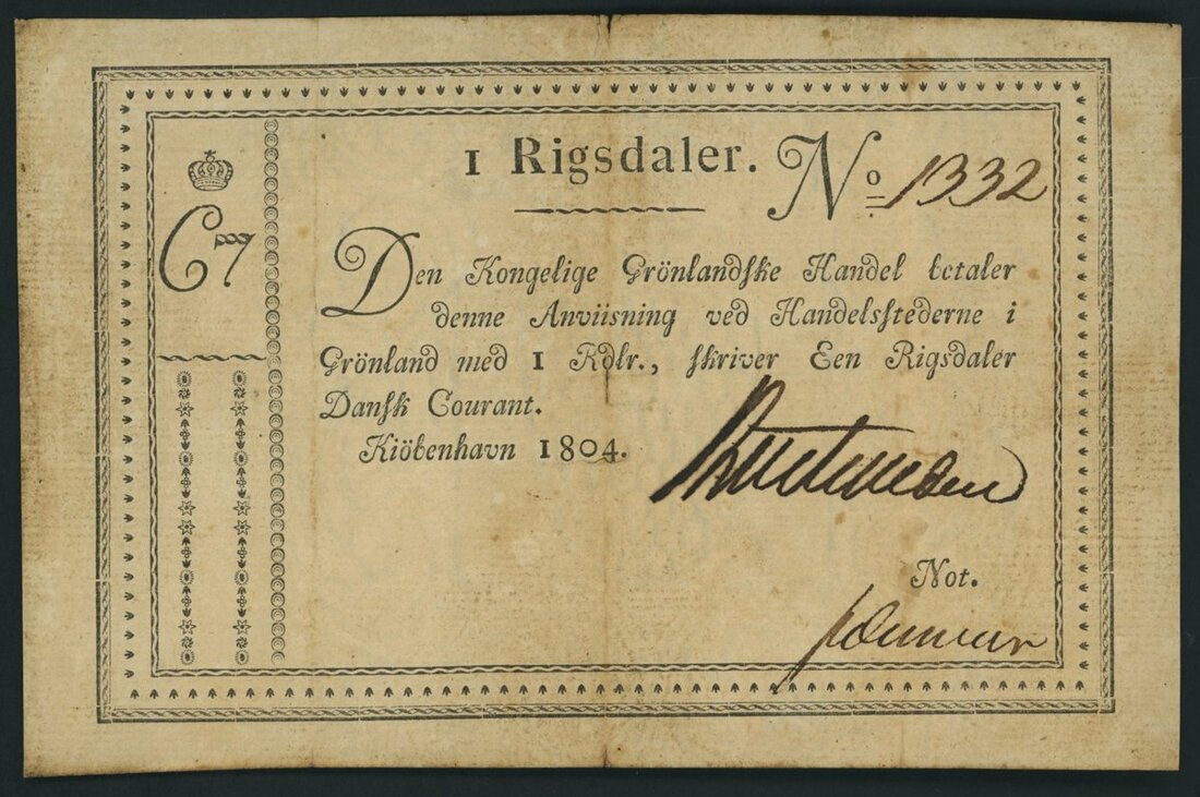 (x) Danish Administration, Greenland, 1 Rigsdaler, 1804, serial number 1332, Handelsstederne,