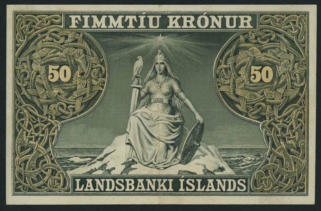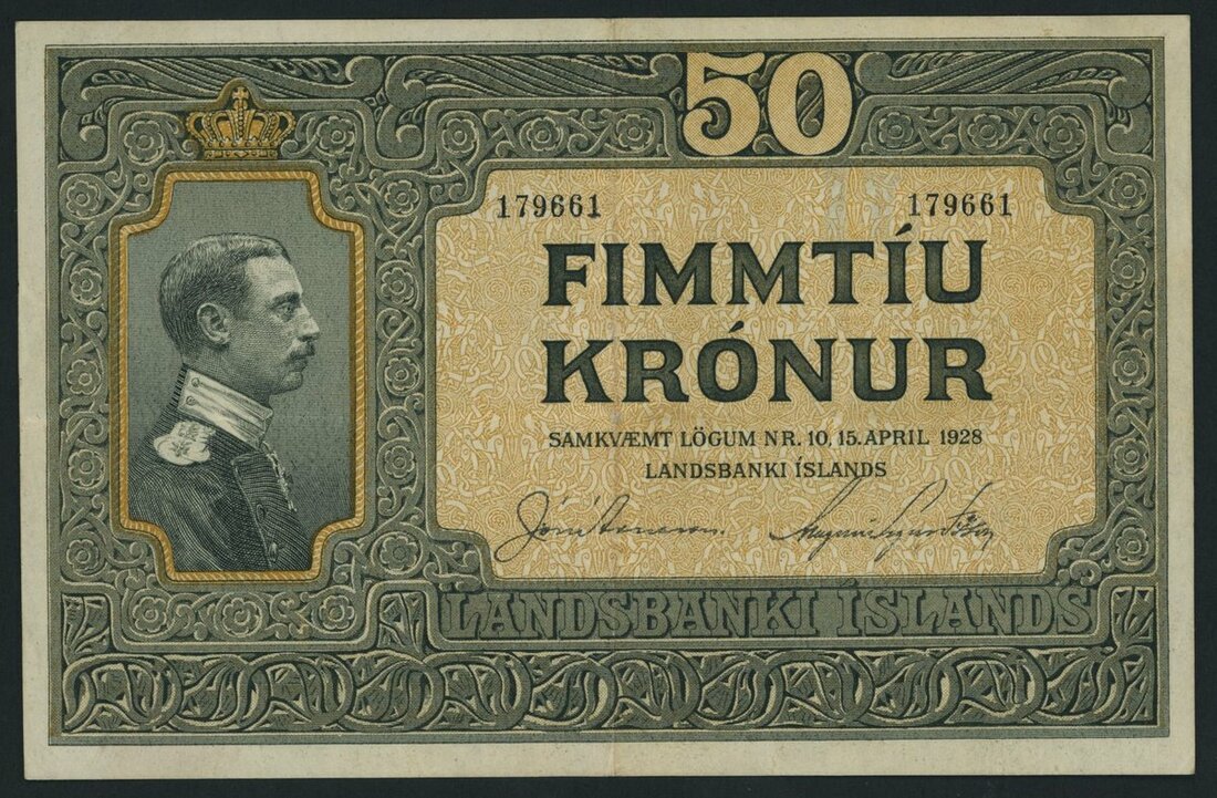 (x) Landsbanki Íslands, Iceland, 50 Krónur, 15th April 1928, serial number 179661, (Pick 25, BNB 603a), very fine, centre hole starting to emerge due to folding