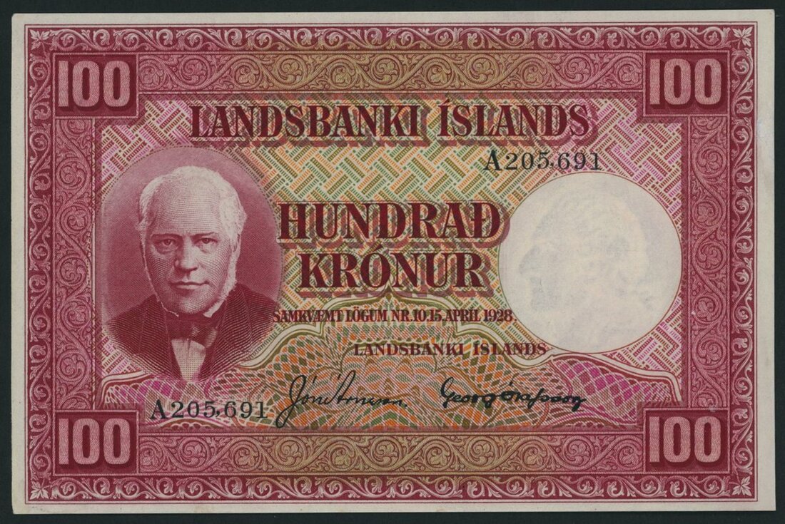 (x) Landsbanki Íslands, Iceland, 100 Krónur, 15th April 1928, serial number A 205691, (Pick 30b, BNB 608b2), slight wear to the corners otherwise uncirculated