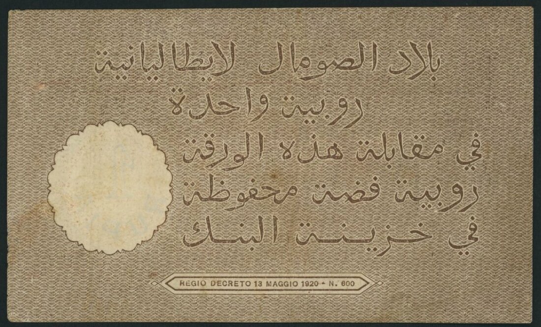 (x) Banca d'Italia, Italian Somaliland, 1 Rupia, 13th May 1920, serial number F2 4553, (Pick 2a), good very fine