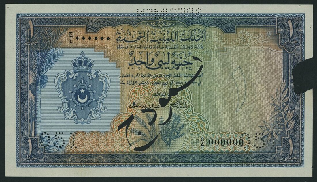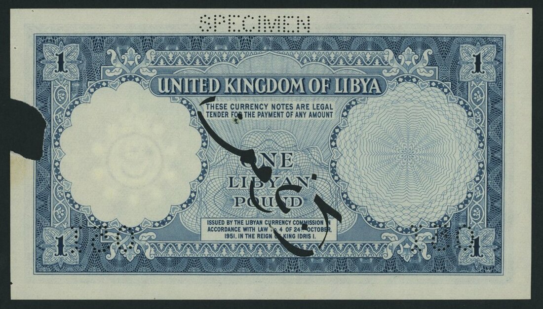 United Kingdom of Libya, specimen 1 Pound, 1951, specimen number 051,